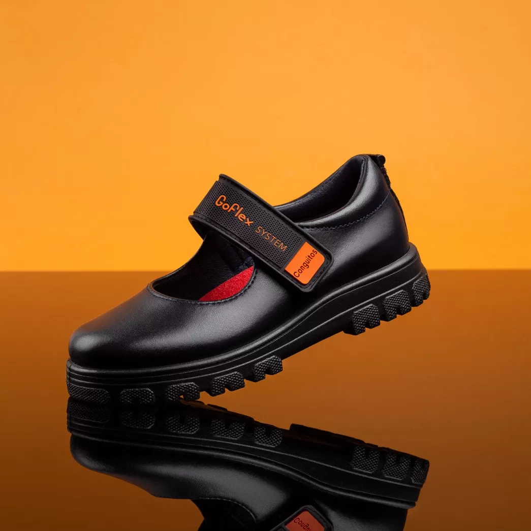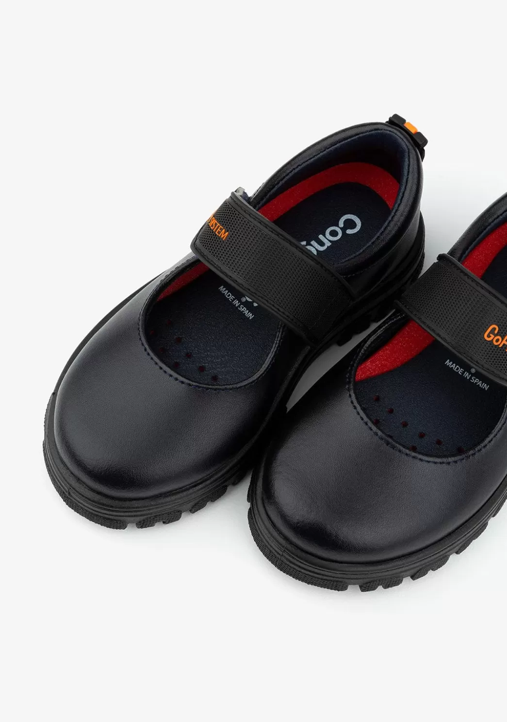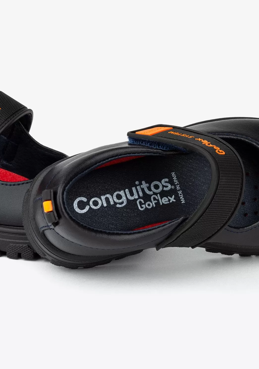 Vuelta al cole! Conguitos, presenta los zapatos escolares Mary Janes para niñas en piel de primera calidad en color marino con plantilla extraíble . El calzado escolar más cómodo para los pies de tus hijos por su flexibilidad y resistencia gracias a su suela de goma dentada.