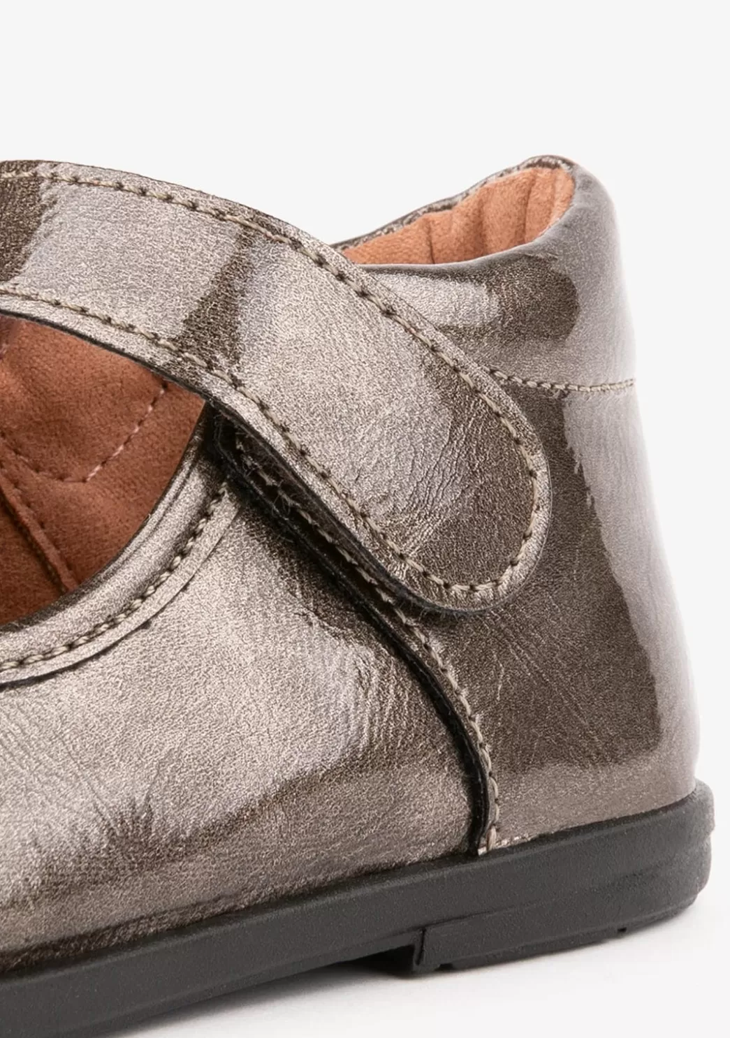 Zapatos Mary Janes para bebé fabricados en color titanio y material de charol. Cuenta con un cierre de hebilla que da una mejor sujeción y ajuste en la zona del empeine. Su suela es de goma para garantizar la flexibilidad y el movimiento natural del pie. Zapatos de bebé ideales para la temporada de otoño invierno. Fabricado en España.