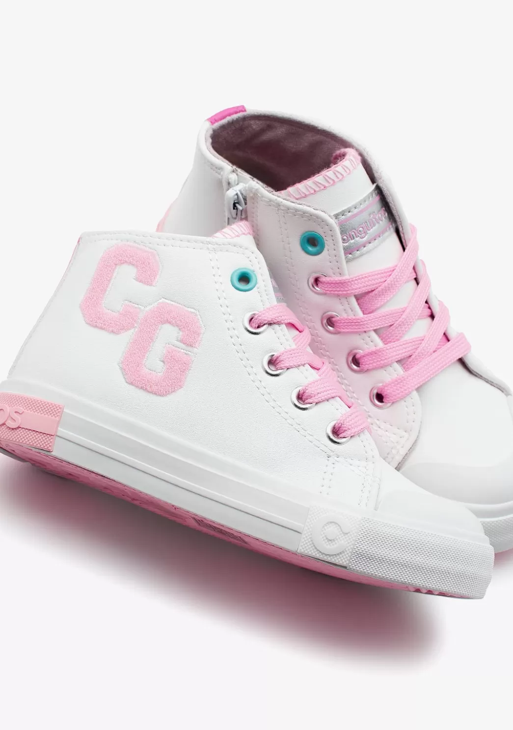 Confeccionadas con napa sintética y forro interior textil. Con detalle de la marca Conguitos bordada en rosa. Su cierre de cordones ajustables de algodón en color rosa permiten una sujeción perfecta para los peques. Además, cuentan con la puntera y el talón reforzados.