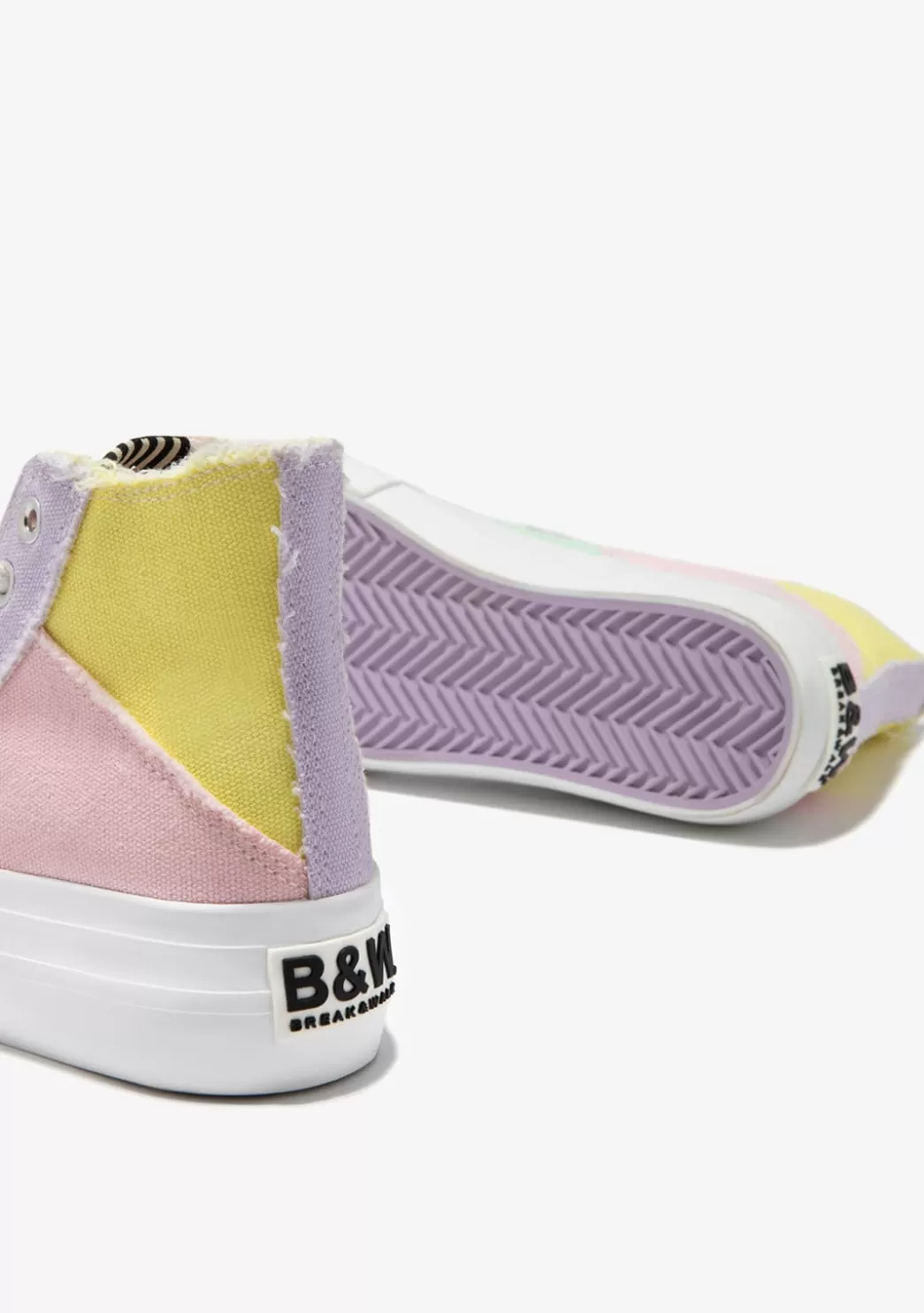 Este modelo está diseñado en tela de algodón con estilo deshilachado. Cuenta con cordones ajustables en blanco y el logo de B&W en el talón.