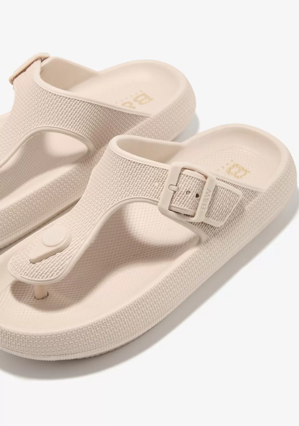 Sandalias de color beige para el verano. Piscina o playa, ¡lo que prefieras!