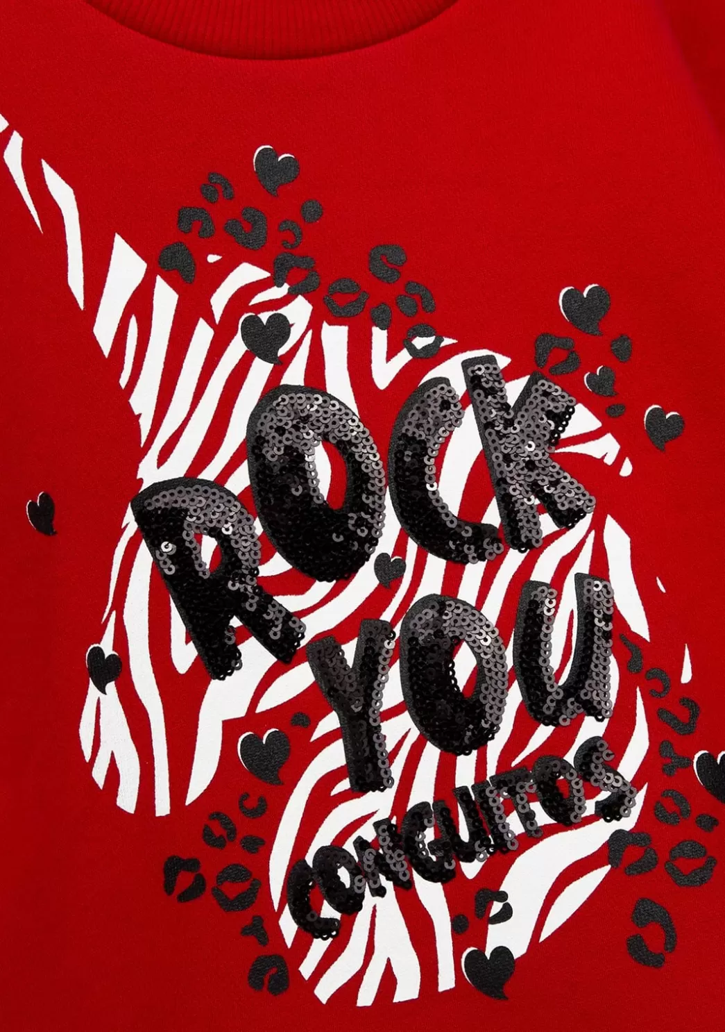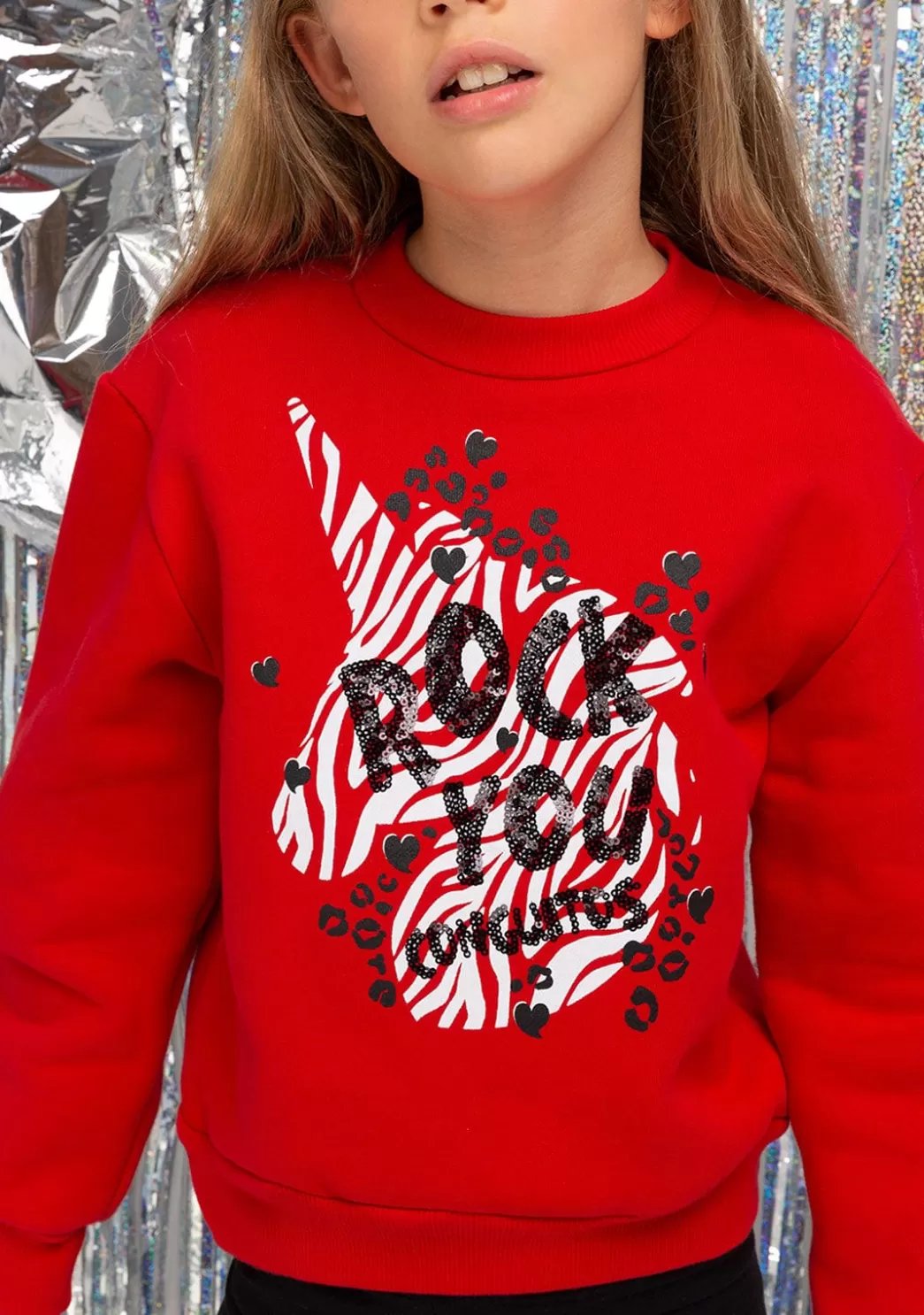 Sudadera de Niña Unicornio Roja fabricada en forro polar de algodón con diseño de unicornio. Sus detalles como lentejuelas negras hacen que el unicornio sea único. Esta sudadera tiene el interior afelpado y las mangas con acabado de puño para aislar mejor del frío.