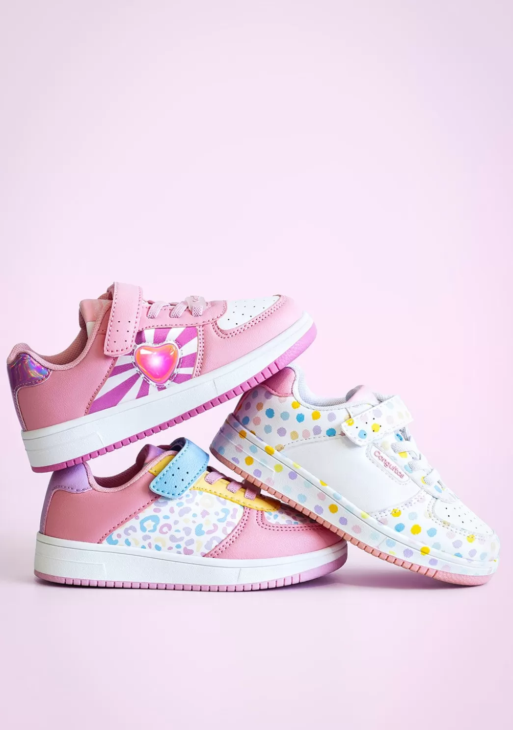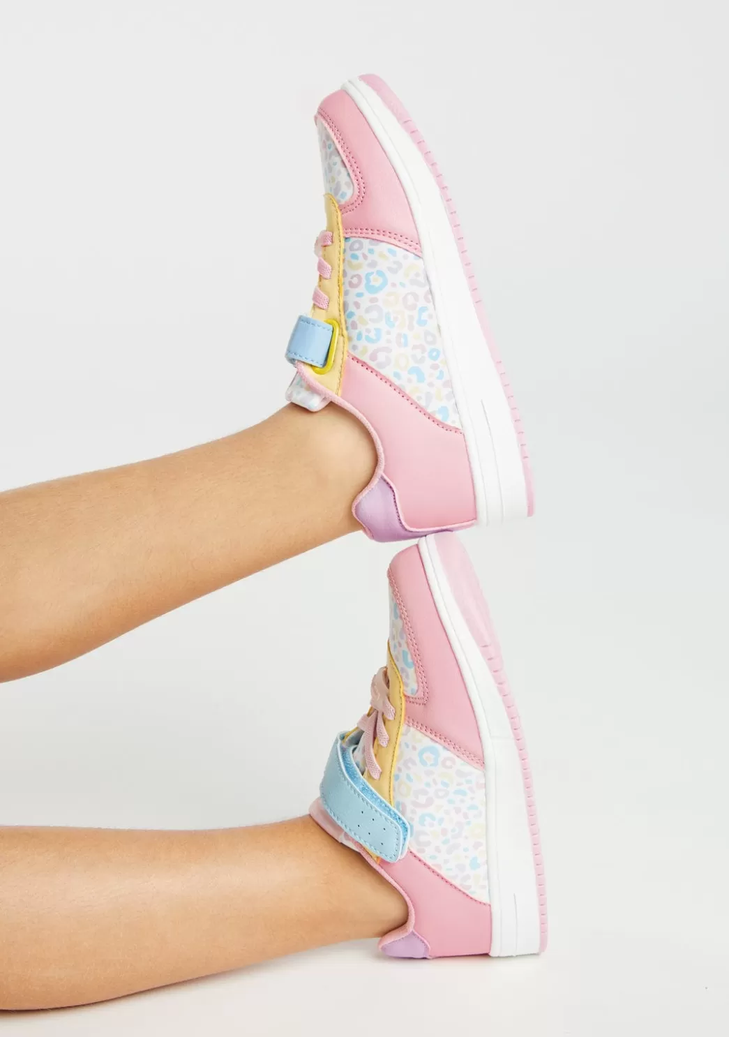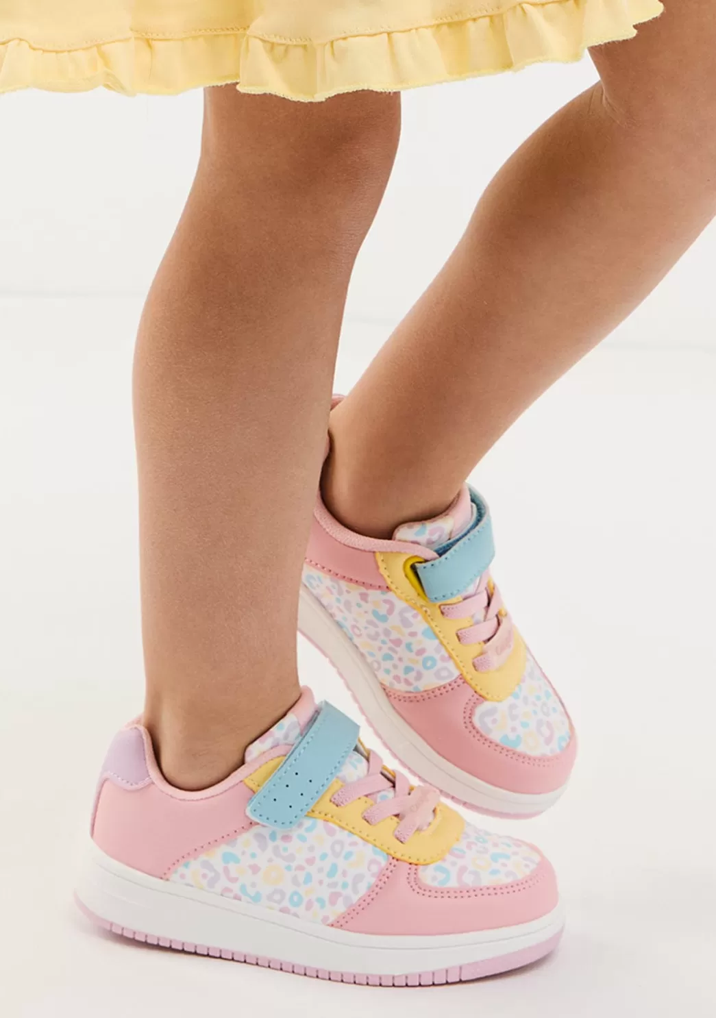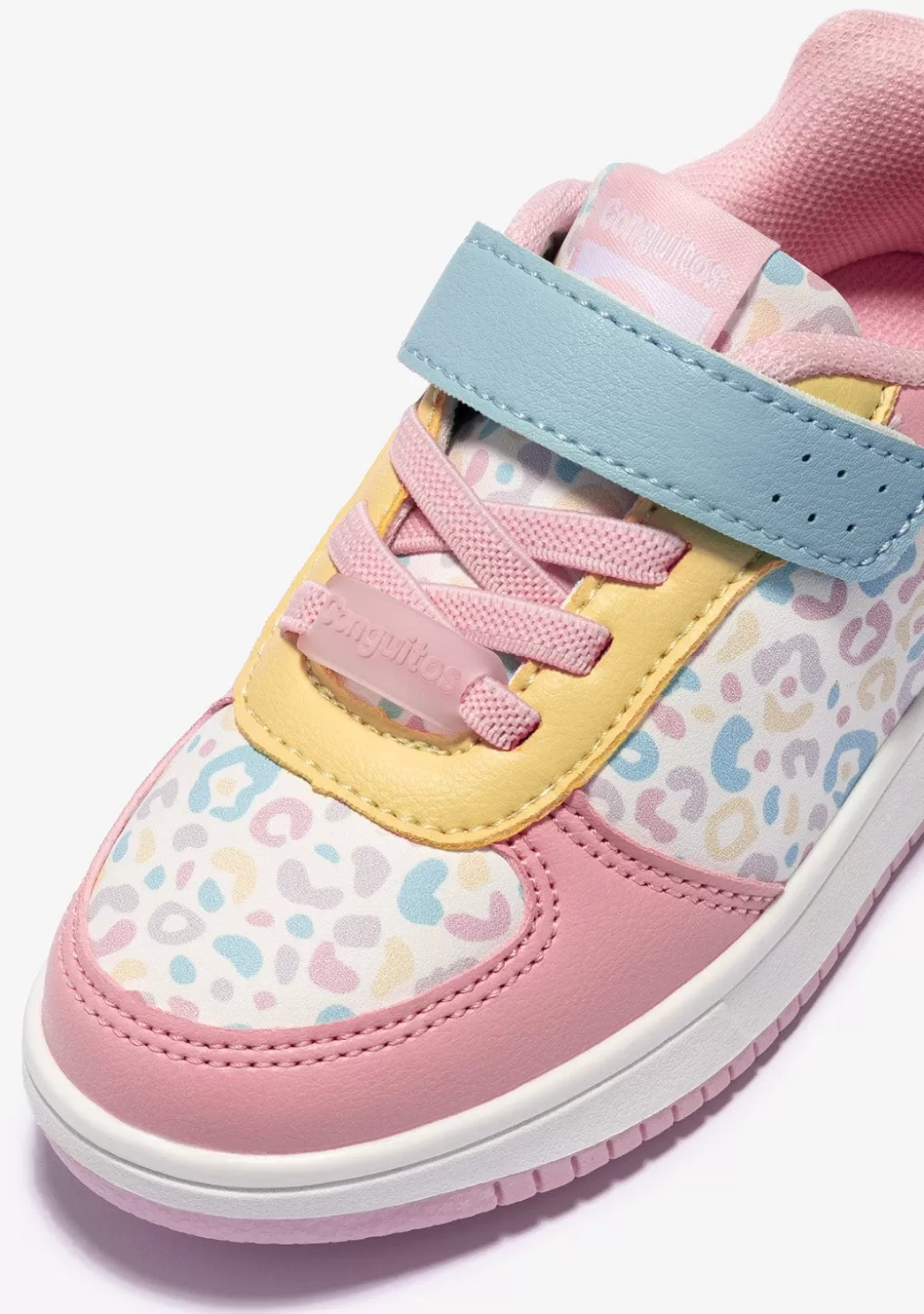 Estas coloridas zapatillas con estampado animal son perfectas para el día a día. Tienen cordones elásticos y tira adherente para mayor sujeción.