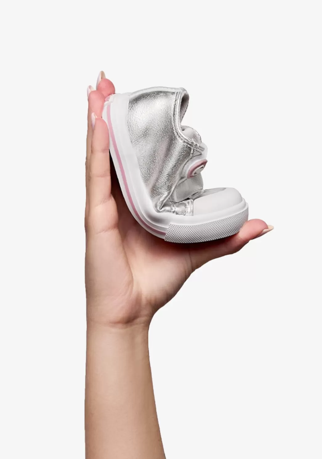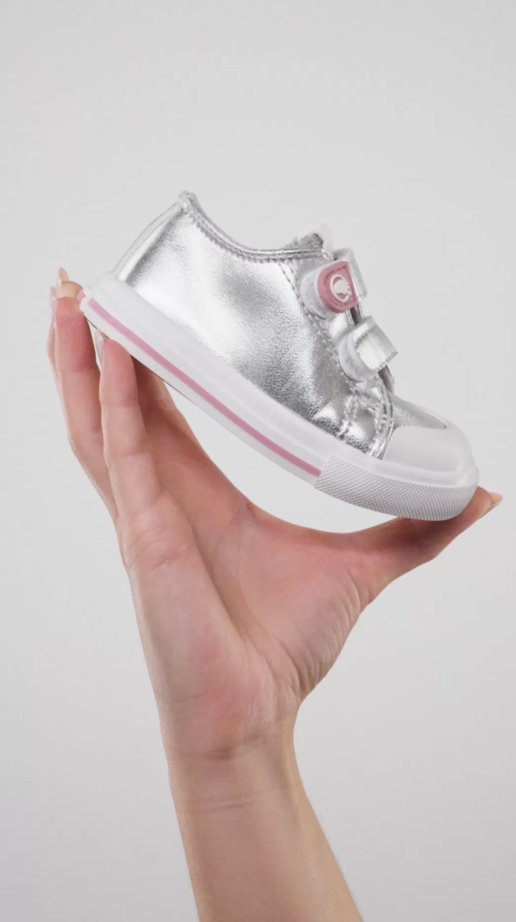 Sneakers de corte bajo de bebé en tono plateado. Un imprescindible para su día a día.