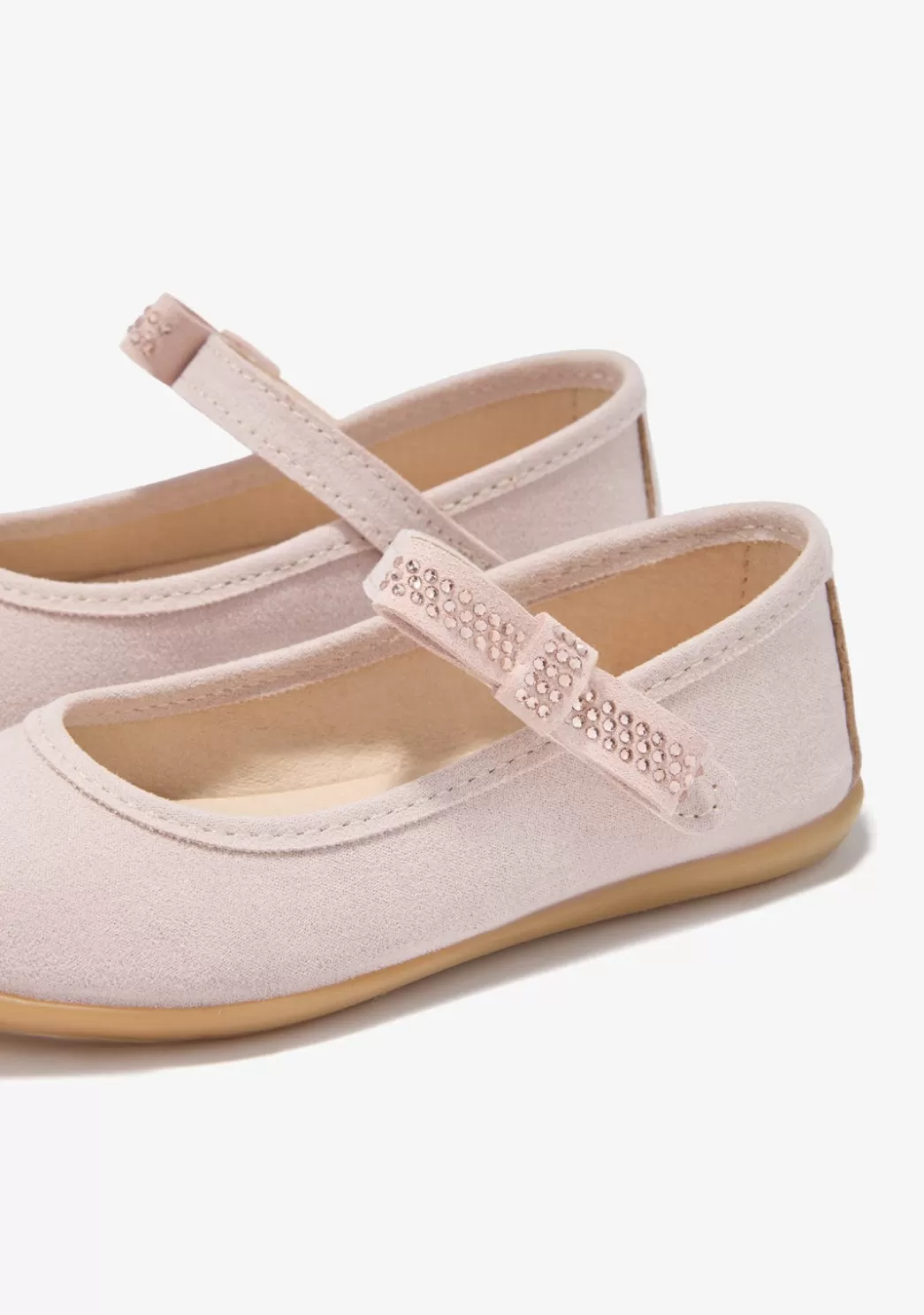 Bailarinas rosas con lazo y brillantes. Un básico cómodo y elegante, perfecto para los eventos de los peques.