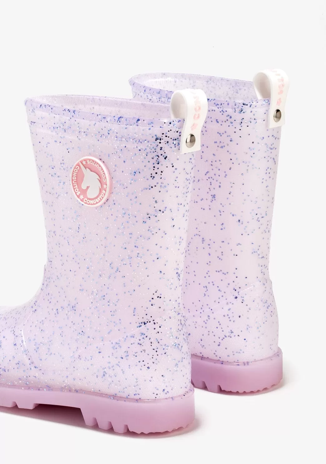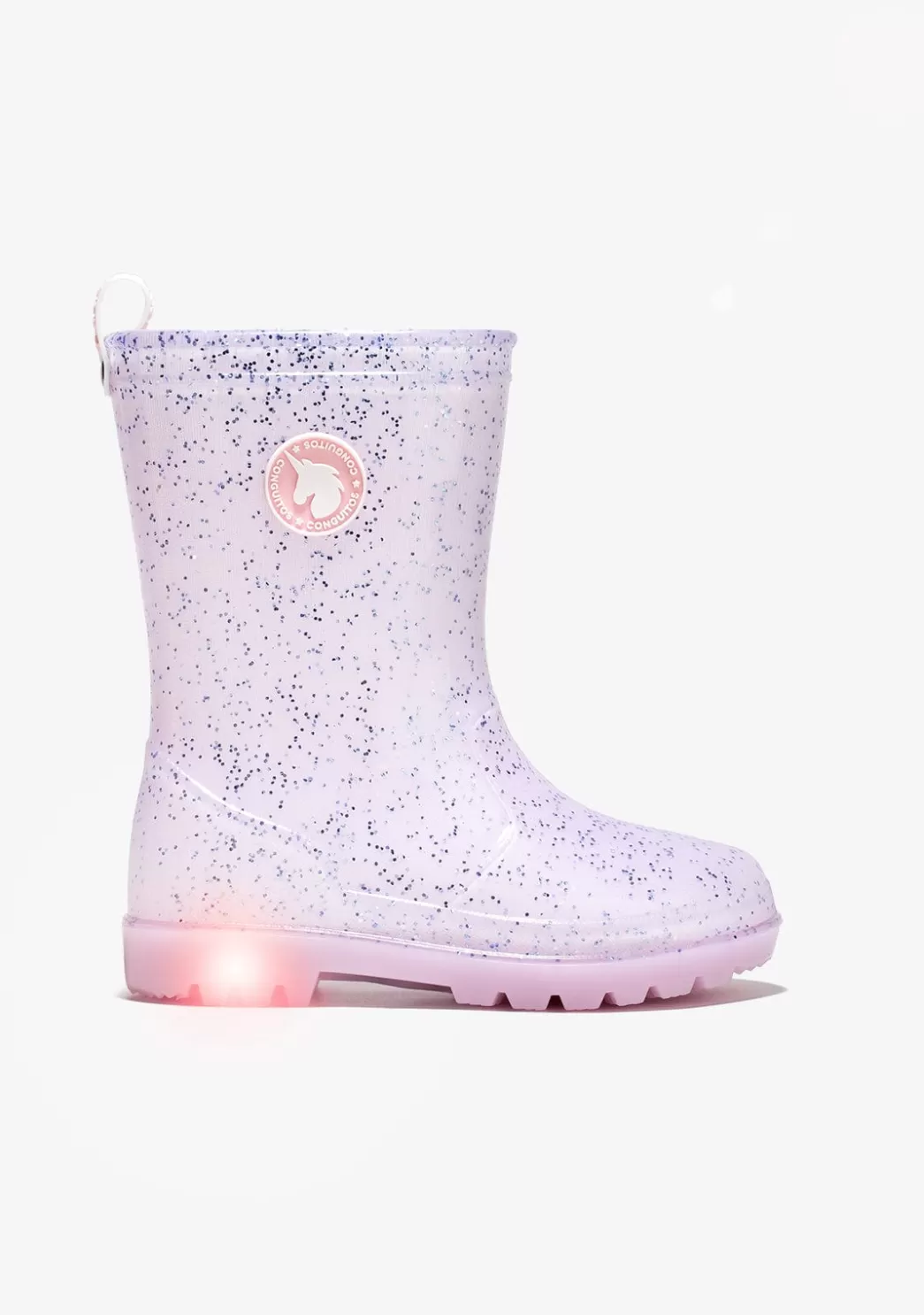 Botas de agua confeccionadas en goma, lo que las hace totalmente impermeables. Son flexibles, cómodas ¡y además tienen luz! Diseñadas en color rosa y con purpurina. Cuentan con el logo de Conguitos en el lateral. Un básico para este invierno que no puede faltar en el armario de los más peques. ¡Para brillar bajo la lluvia!