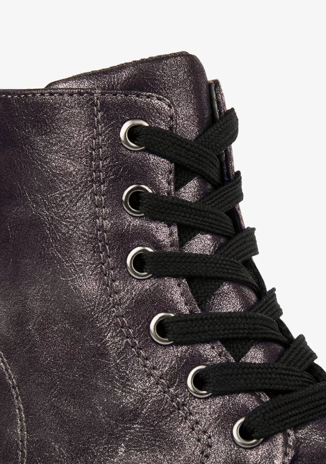 Botas de estilo militar en color bronce, fabricadas en piel sintética metalizada. Con detalle de tirador, interior acolchado, caña media, suela de goma y cierre de cremallera en el lateral para permitir una puesta sencilla y cómoda. La suela dentada proporciona mayor comodidad y agarre, además tiene la suela cosida al piso para aumentar la durabilidad del calzado. Ideal para conseguir ese toque rockero y atrevido para el look de tu pequeña, pero sin descuidar la comodidad que caracteriza a Conguitos.