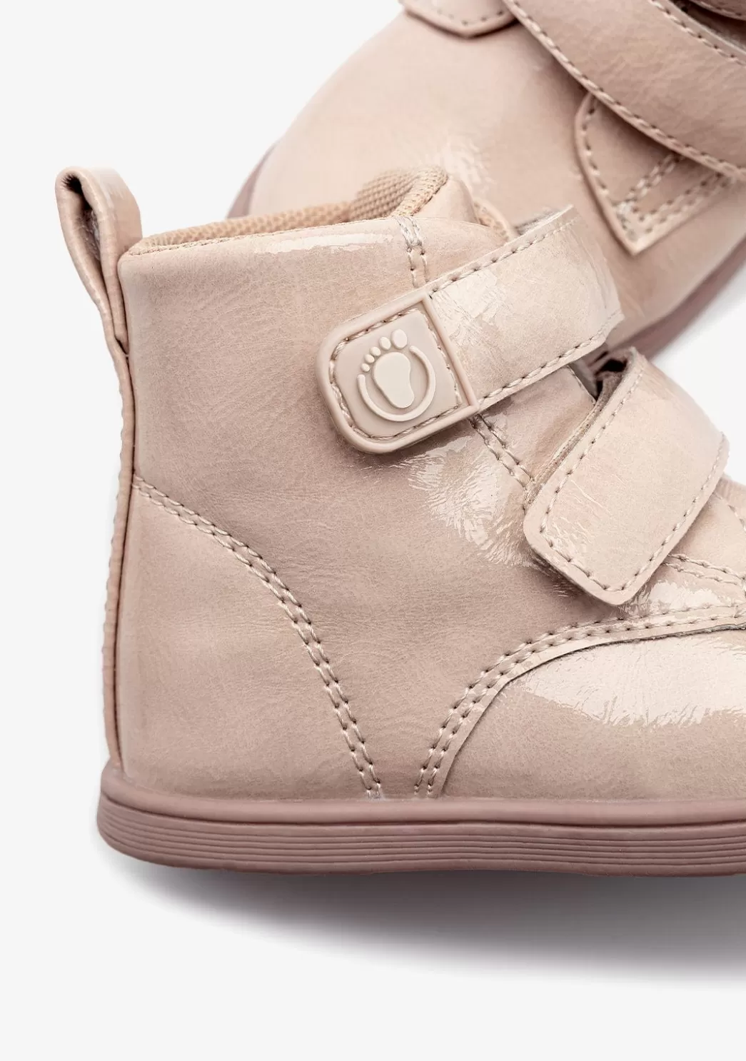 Botas de bebé en tono beige con acabado efecto charol. Un esencial cálido creado para los días más fríos.