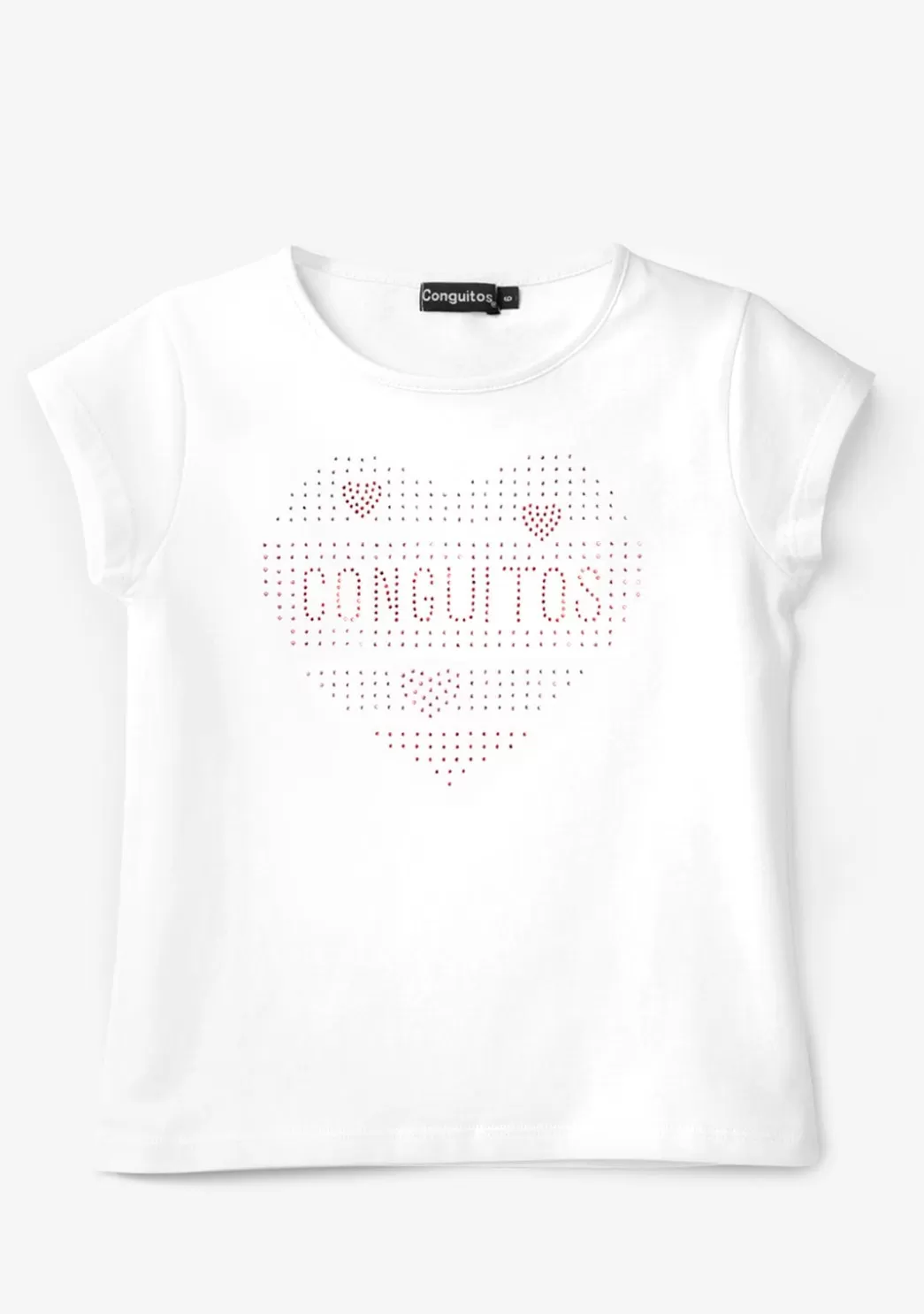 Camiseta blanca de algodón con corazón, perfecta para pasar los días más cálidos de la forma más fresca y divertida.