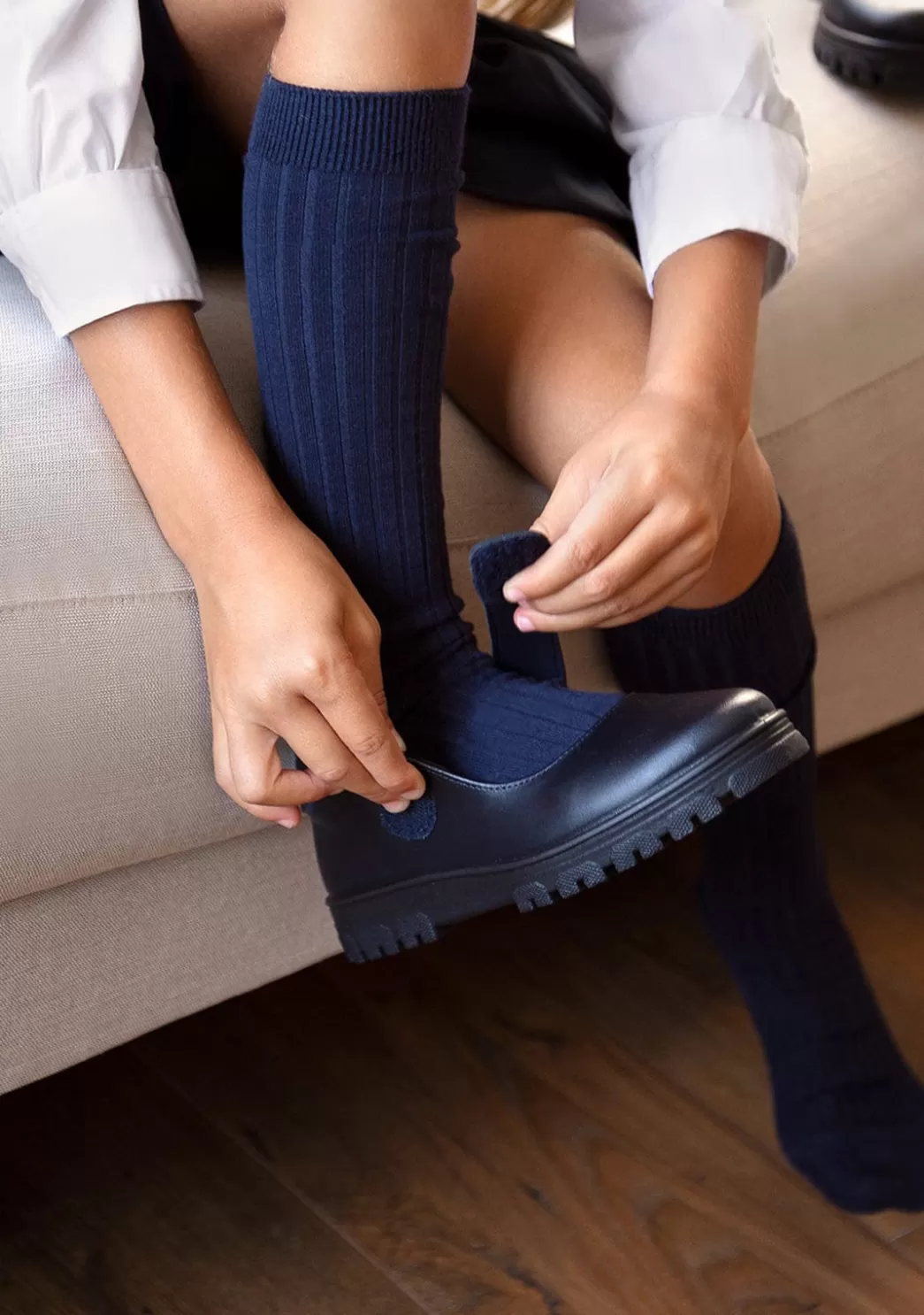 ¡De vuelta al cole! Conguitos Wash Me, presenta los zapatos escolares para niñas en zapatos de piel lavable en marino con plantilla extraíble. Los zapatos colegiales más cómodos para los pies de sus hijos debido a su flexibilidad y resistencia debido a su suela de goma dentada.
