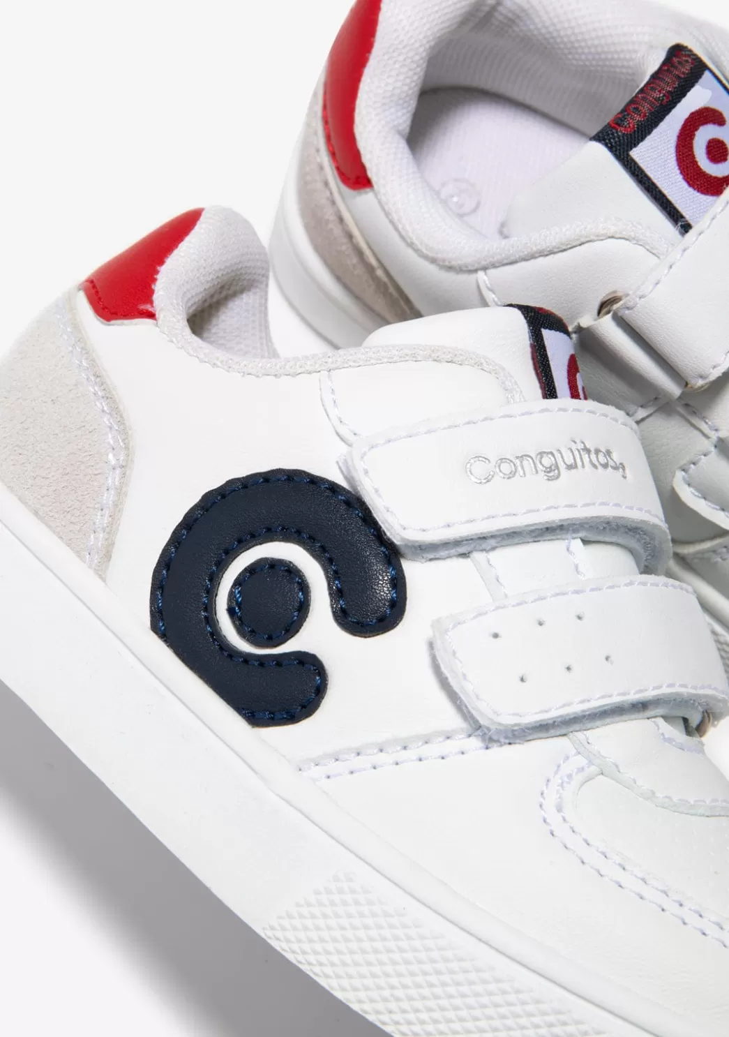 Cuentan con el logo de Conguitos en el lateral en el talón y la parte superior. Además, tienen suela de goma para un mejor agarre al suelo. También presenta una plantilla transpirable.