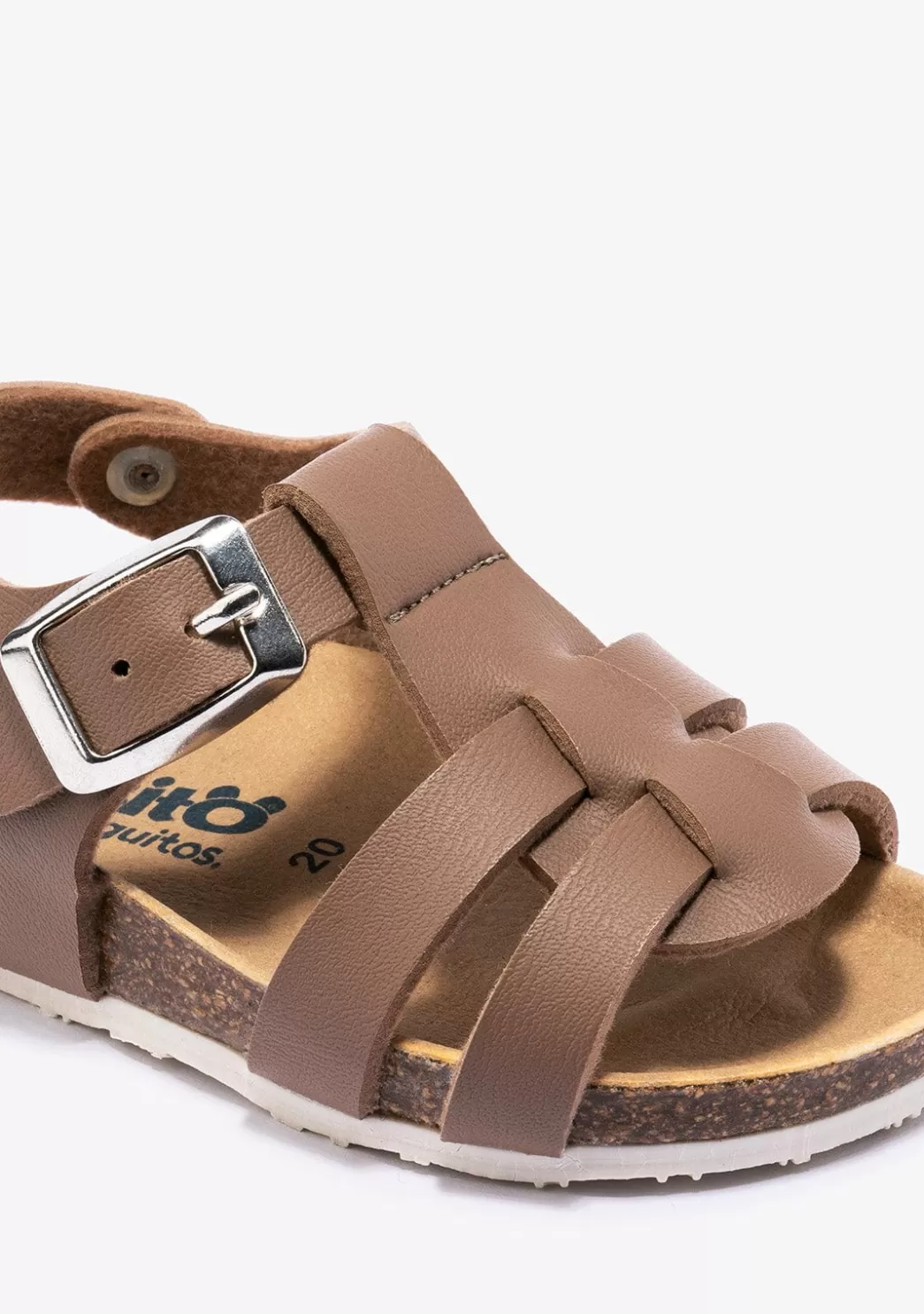 Sandalias de bebé estilo BIO en color taupe. Confeccionadas en material ligero. Cierre de hebilla. Talón sujeto. La plantilla bio se amolda a la forma del pie. Suela de goma que mejora el agarre.