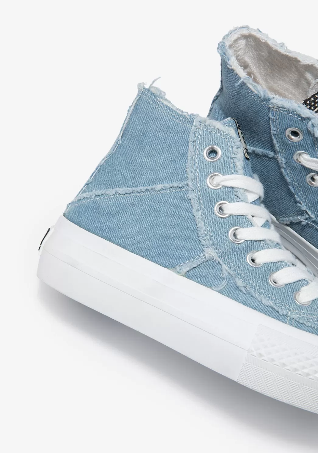 Zapatillas altas denim, estilo denim al siguiente nivel.Este modelo está diseñado en tela denim con estilo deshilachad…