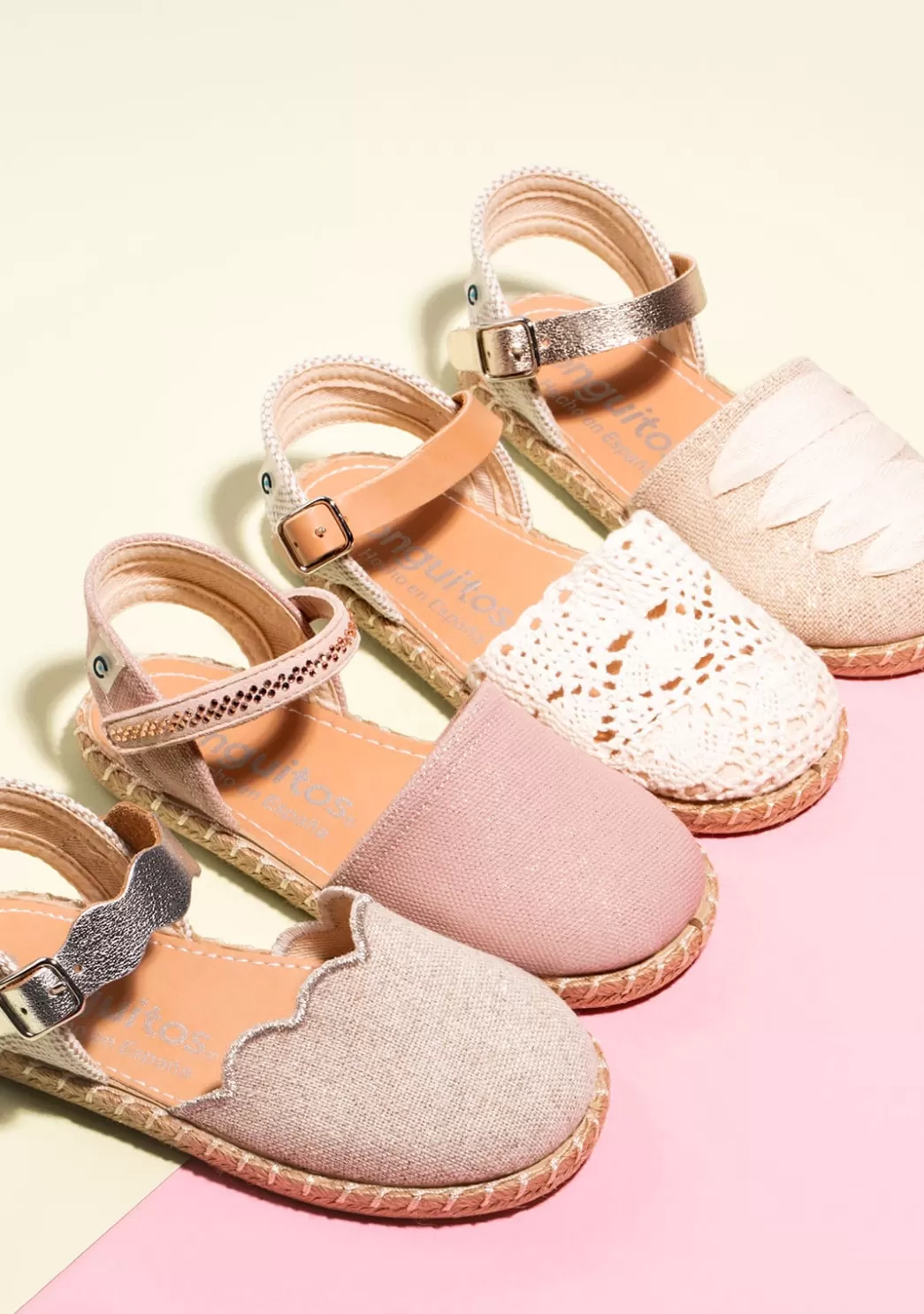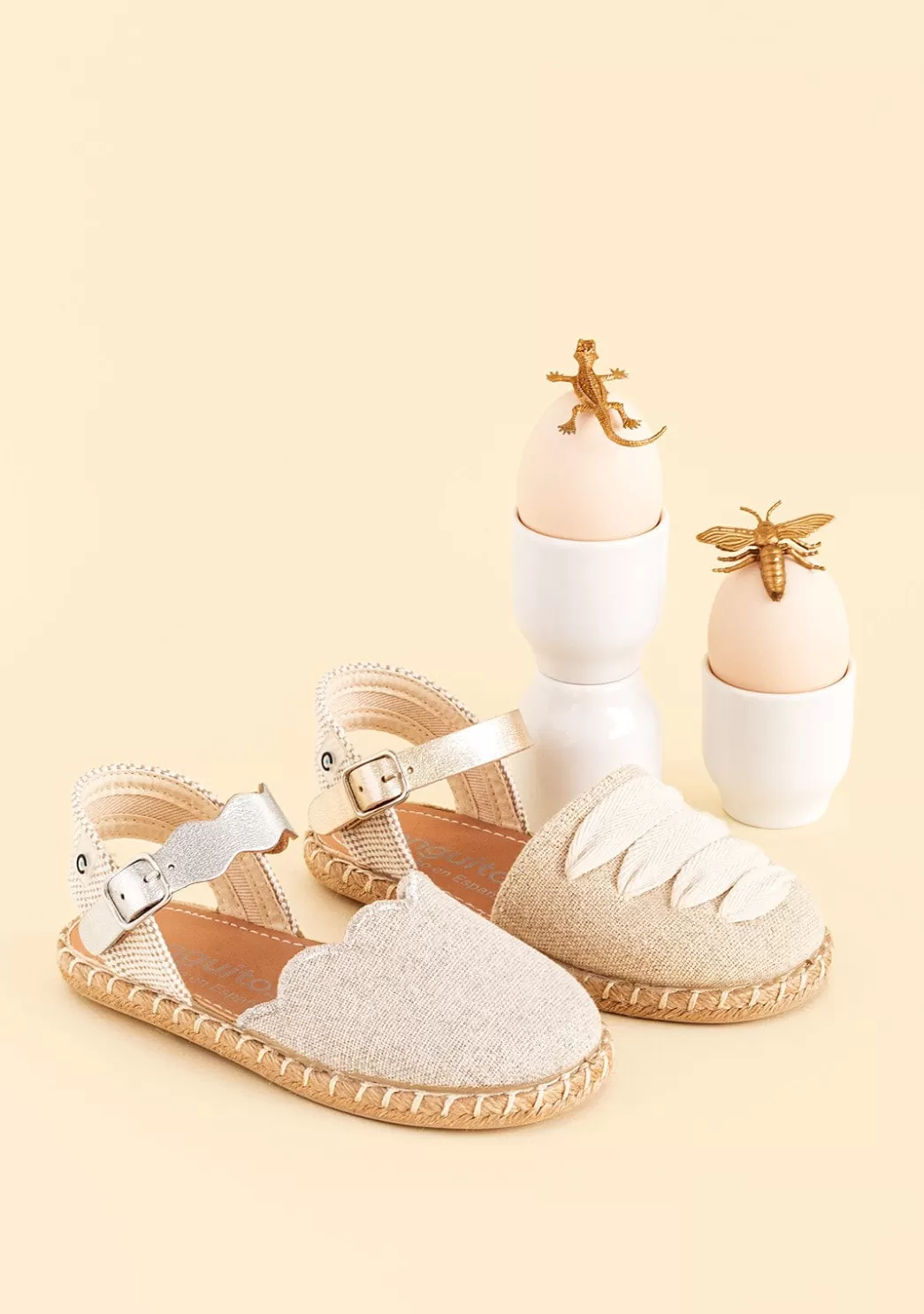 Alpargatas de niña en color plata con acabado metalizado. Suela de yute y exterior de goma. Cierre de pulsera con cierr…