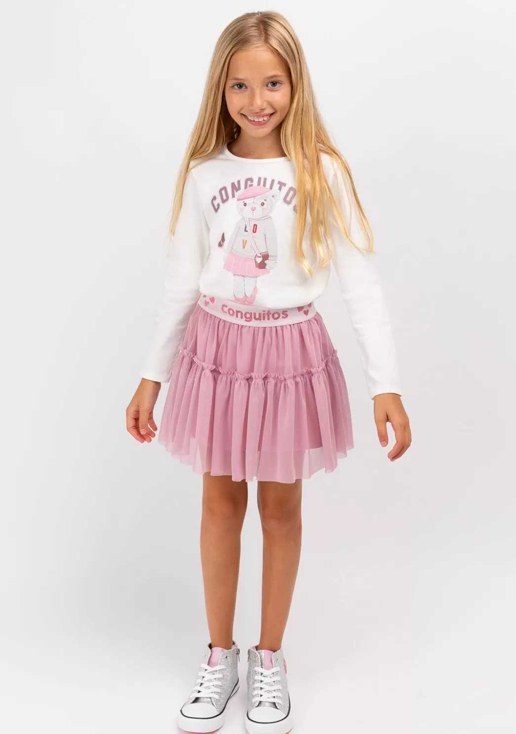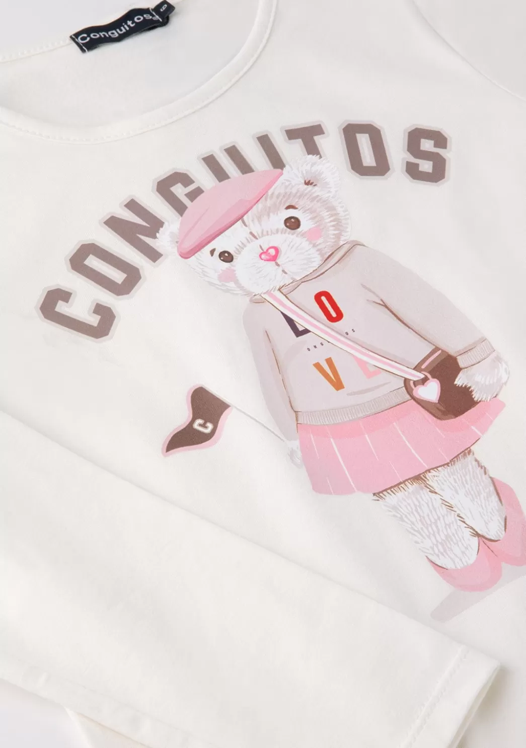 Clearance Camiseta De Niña Osito University Blanco Camisetas | Camisetas Manga Larga