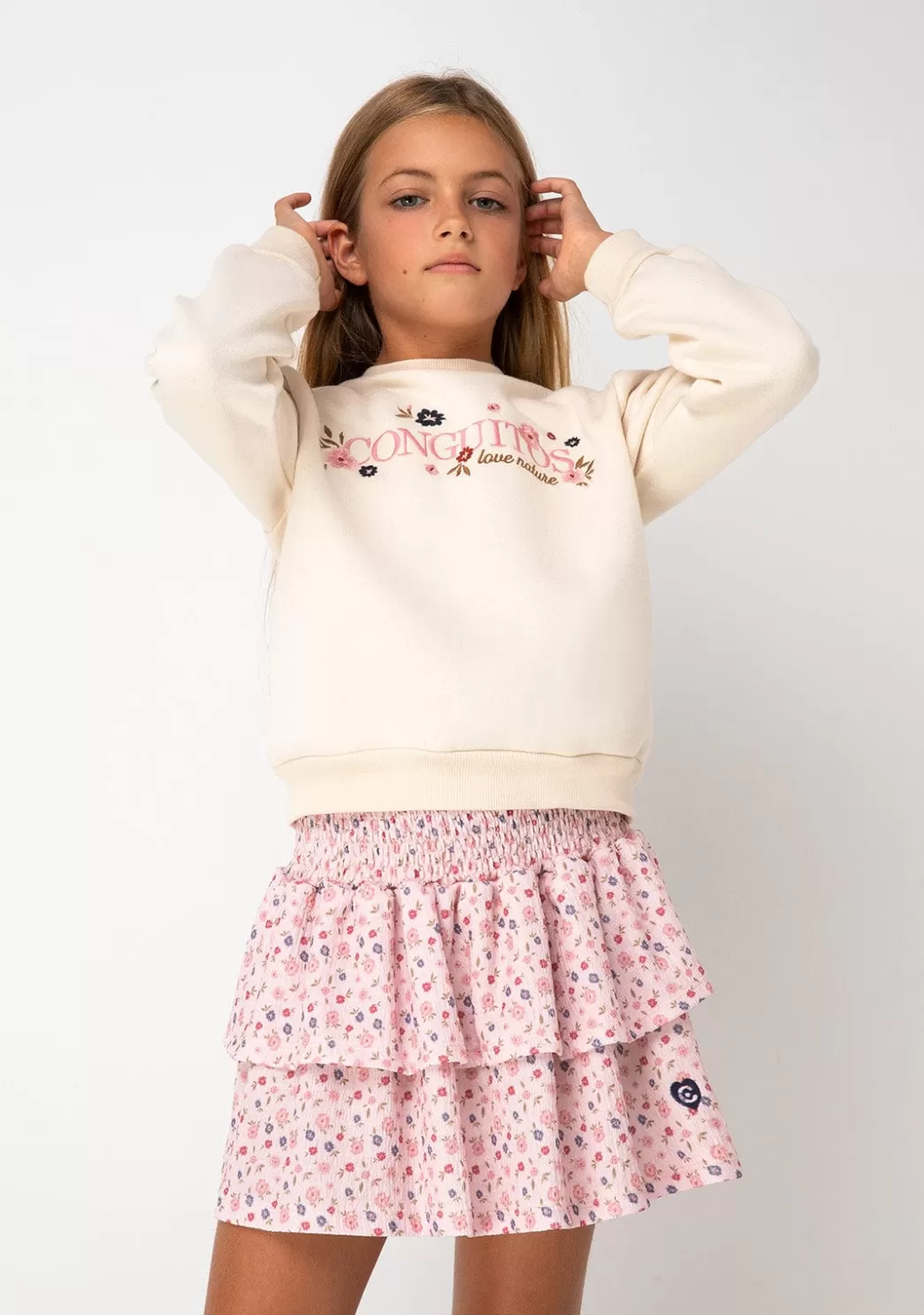 Clearance Sudadera De Niña Flores Beige Sudaderas