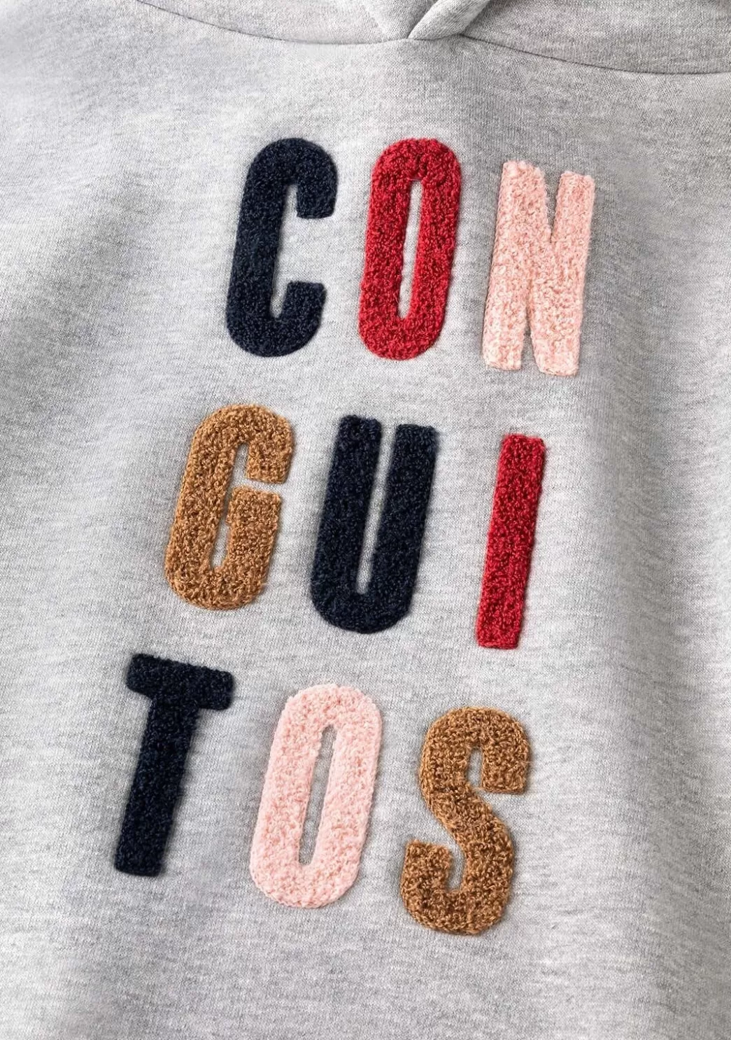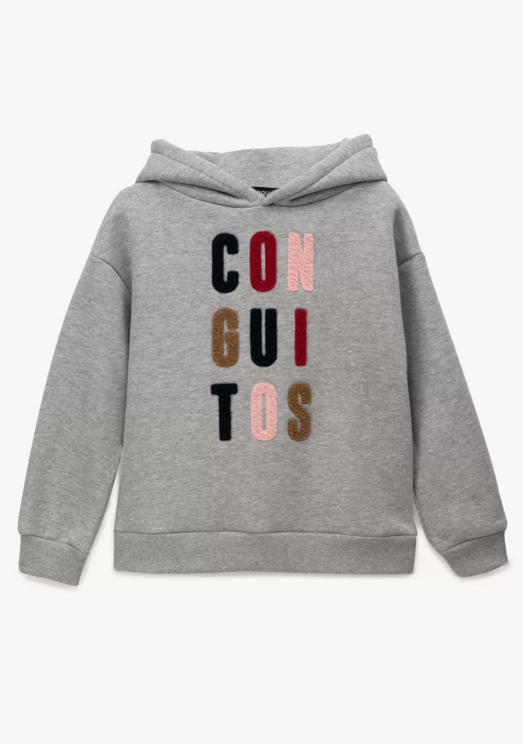 Sudadera con capucha para niña con mangas de corte recto y cálido interior de felpa. Puños y dobladillo elásticos. Adorno delantero con letras texturadas que forman la palabra Conguitos.