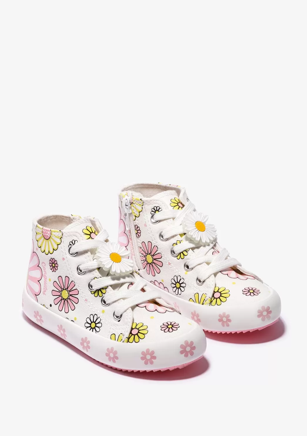 Explosión floral. Estas zapatillas altas decoradas con flores de colores son perfectas para dar un toque de alegría a los looks de los pequeños.