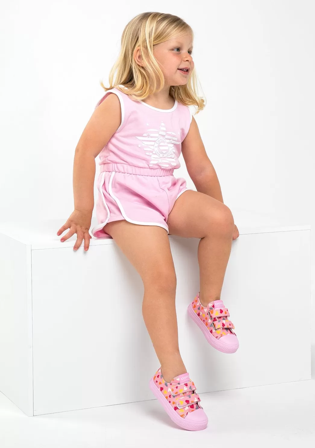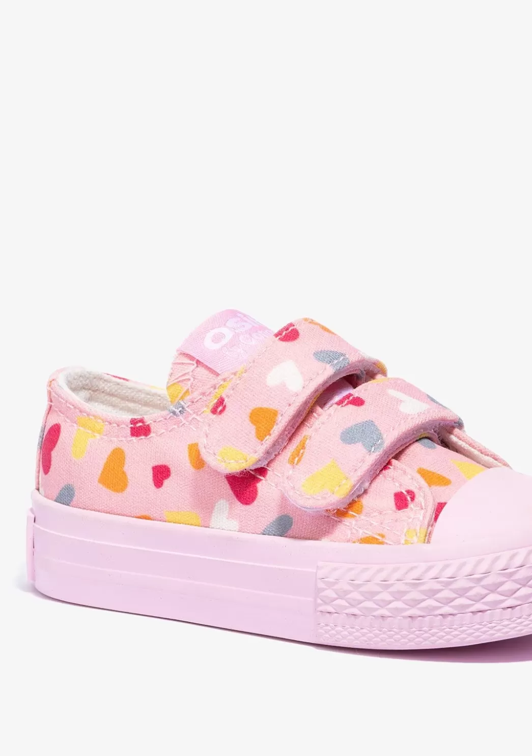 Estas zapatillas confeccionadas en lona tienen suela de goma, cierre adherente y puntera reforzada, garantizando la comodidad en cada paso de los más pequeños de la casa. Estampado de corazones multicolor.