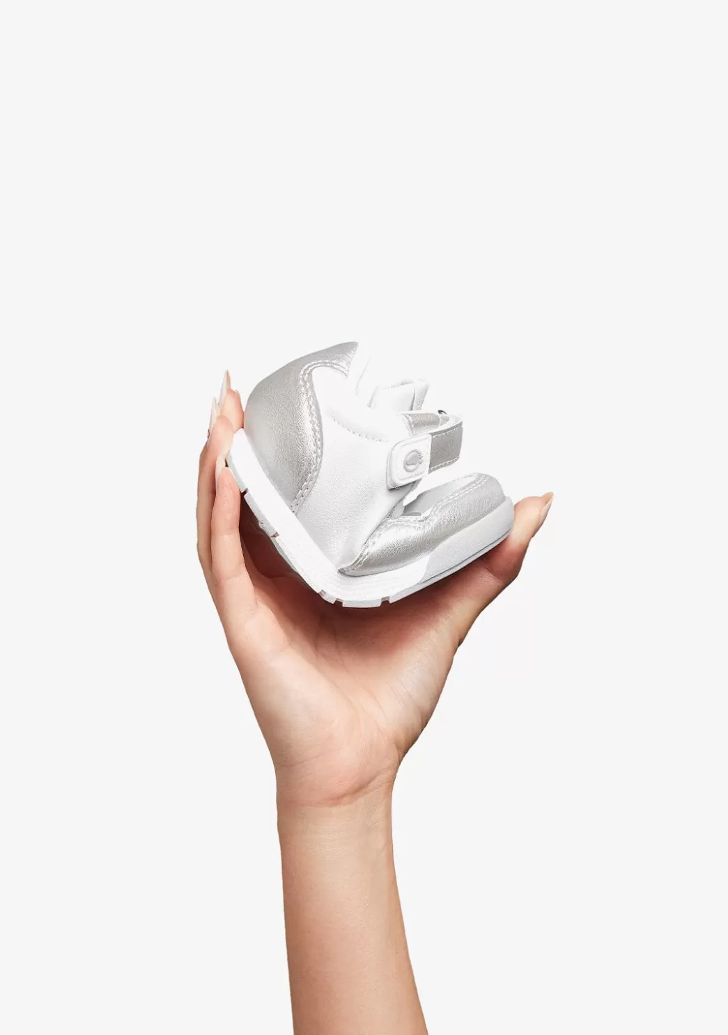 Calzado respetuoso plata tipo sneaker para sus primeros pasos. Este diseño cumple con todos los requisitos podológicos: es ligero, flexible, con puntera ancha y con una suela cero drop que mantiene la misma altura desde el talón hasta la puntera. Estas características facilitan el andar con libertad, generando así el efecto barefoot descalzo o «barefoot».