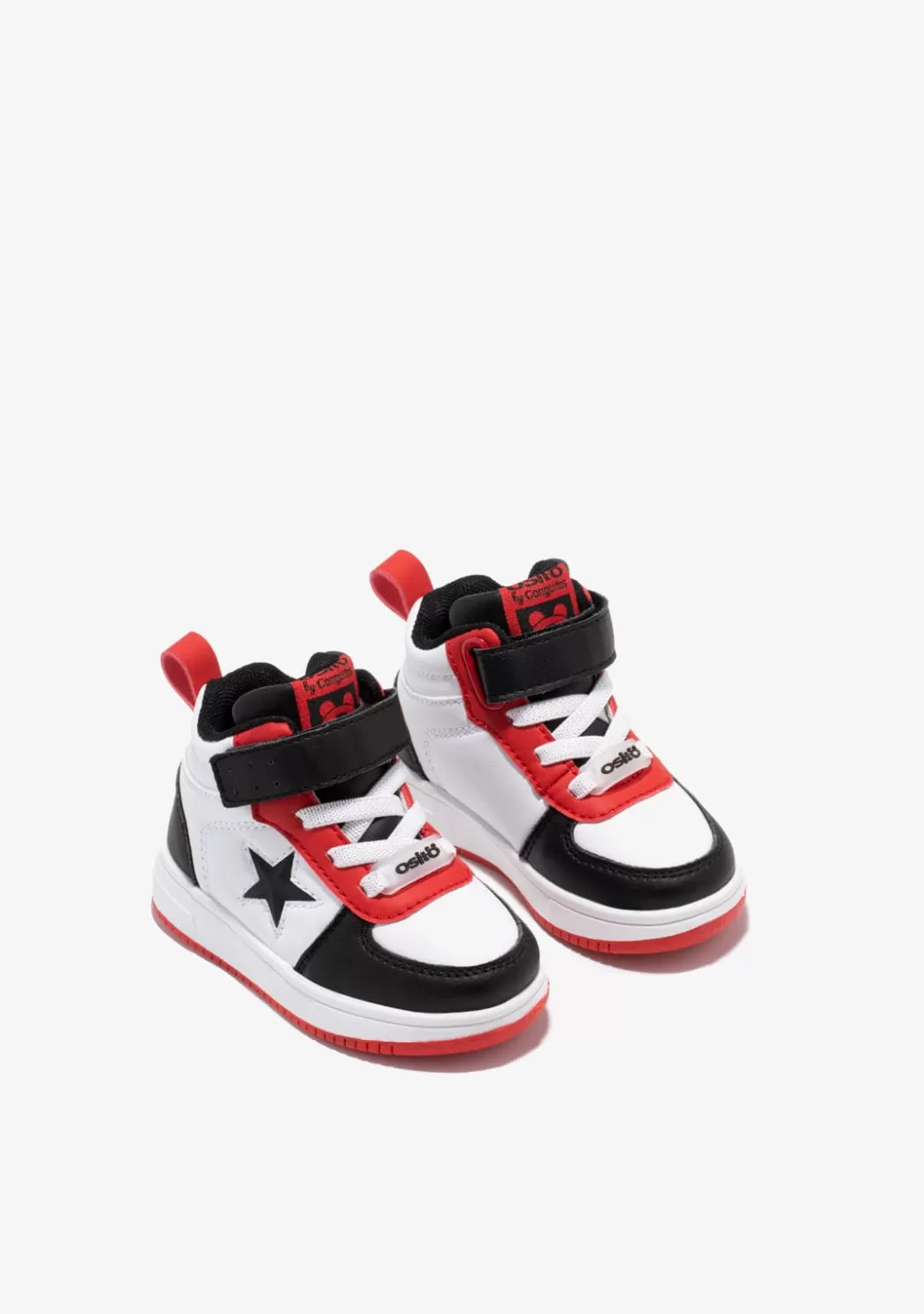 Zapatillas altas de bebé confeccionadas en material sintético. Cordones elásticos. Detalle de estrella que se ilumina a cada paso en el lateral. Tira adherente que mejora la sujeción del pie. Suela de goma antideslizante.