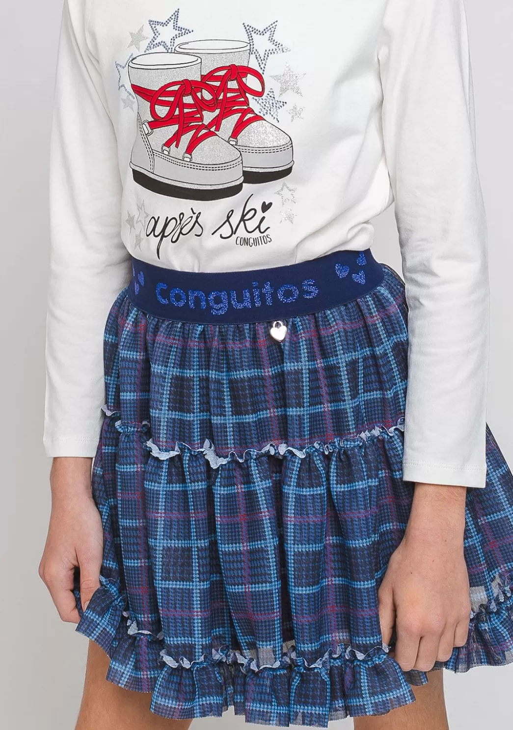 Fashion Falda De Niña Tul Cuadros Marino Faldas