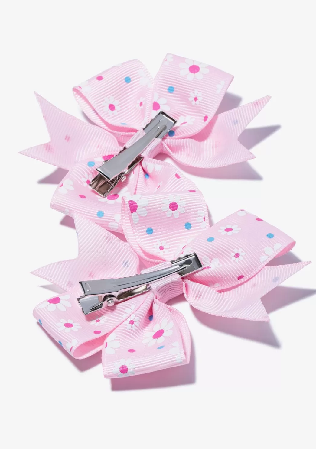 Este pack de 2 lazos color rosa con margaritas es perfecto para darle un toque coquette a los looks de los más peques. Los lazos tienen un gancho metálico en la parte trasera para sujetar el pelo. El accesorio perfecto para todo tipo de ocasiones.