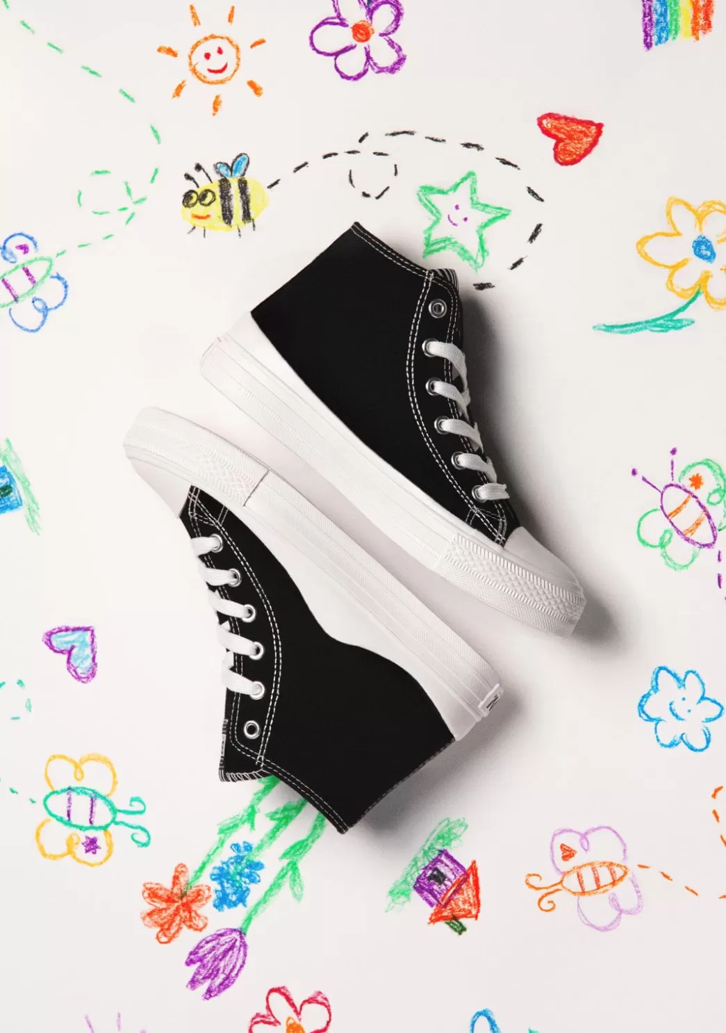 Este modelo de lona negra es el contraste perfecto de colores. Destacan por su suela la goma blanca que abarca parte de la lona. Tiene el logo de B&W en el talón y en la parte superior.