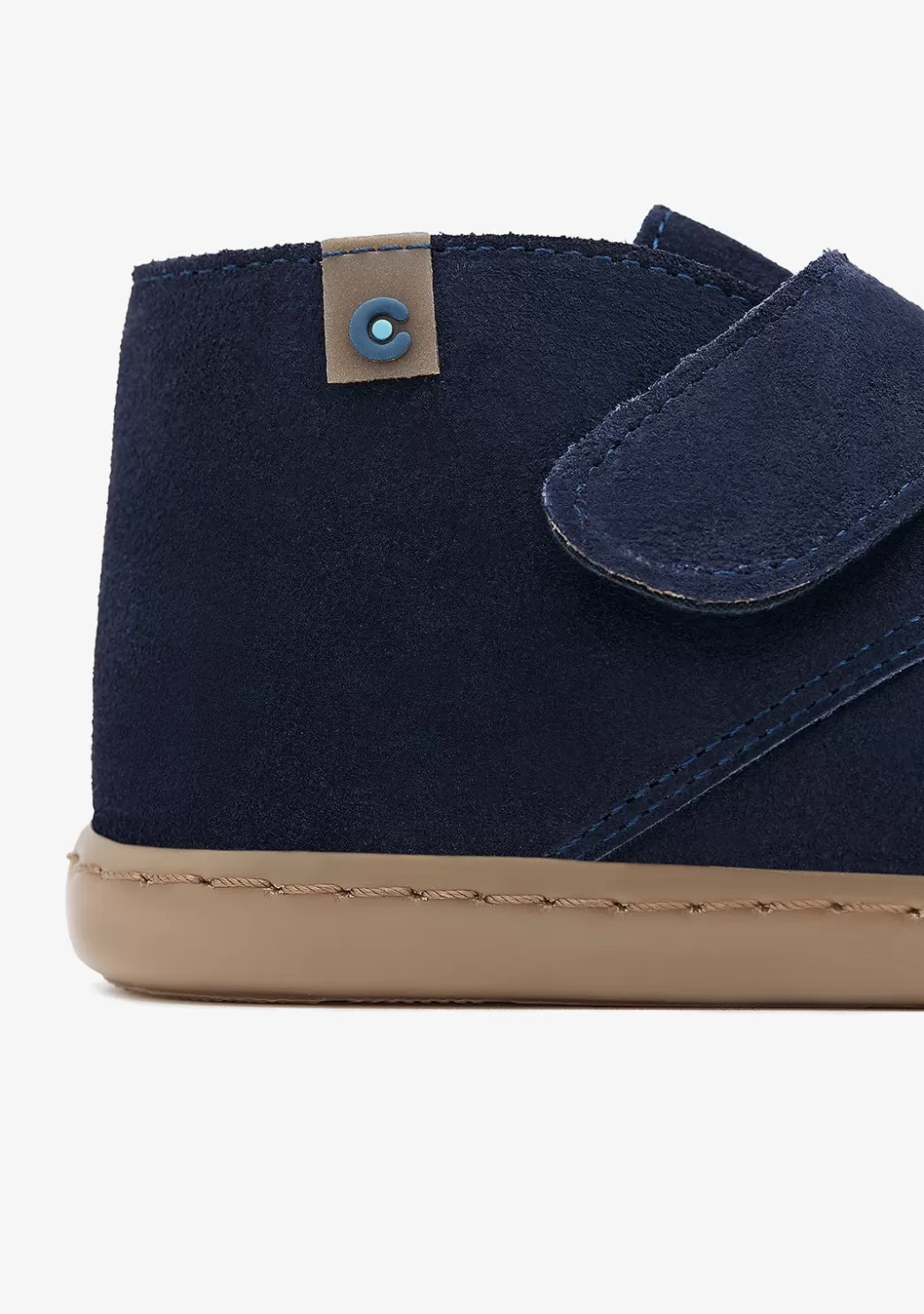 Diseño en marino con cierre de tira adherente de fácil quita y pon. También cuenta con plantilla extraíble, diseñada para ofrecer mayor comodidad y permitir su fácil sustitución o limpieza.