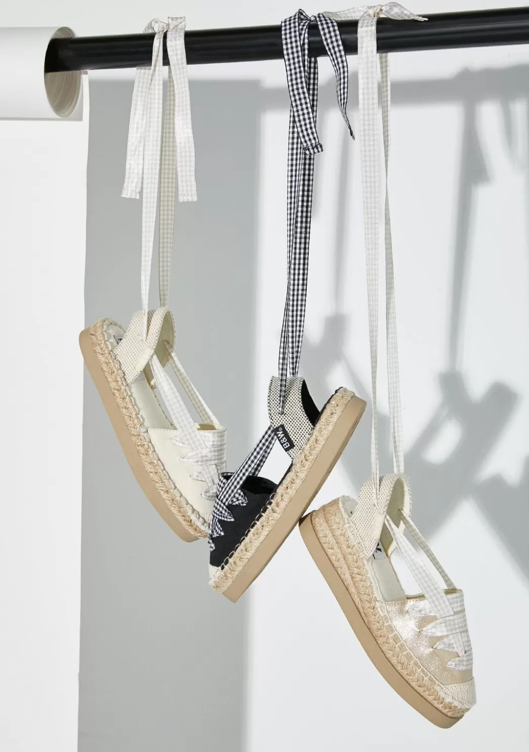 Las nuevas alpargatas en color beige están confeccionadas en lona, con puntera cerrada, yute y suela de goma. También disponen de cierre mediante cintas que unen desde la parte frontal a la zona trasera y se anudan en el tobillo mediante lazada. ¡No te quedes sin ellas!