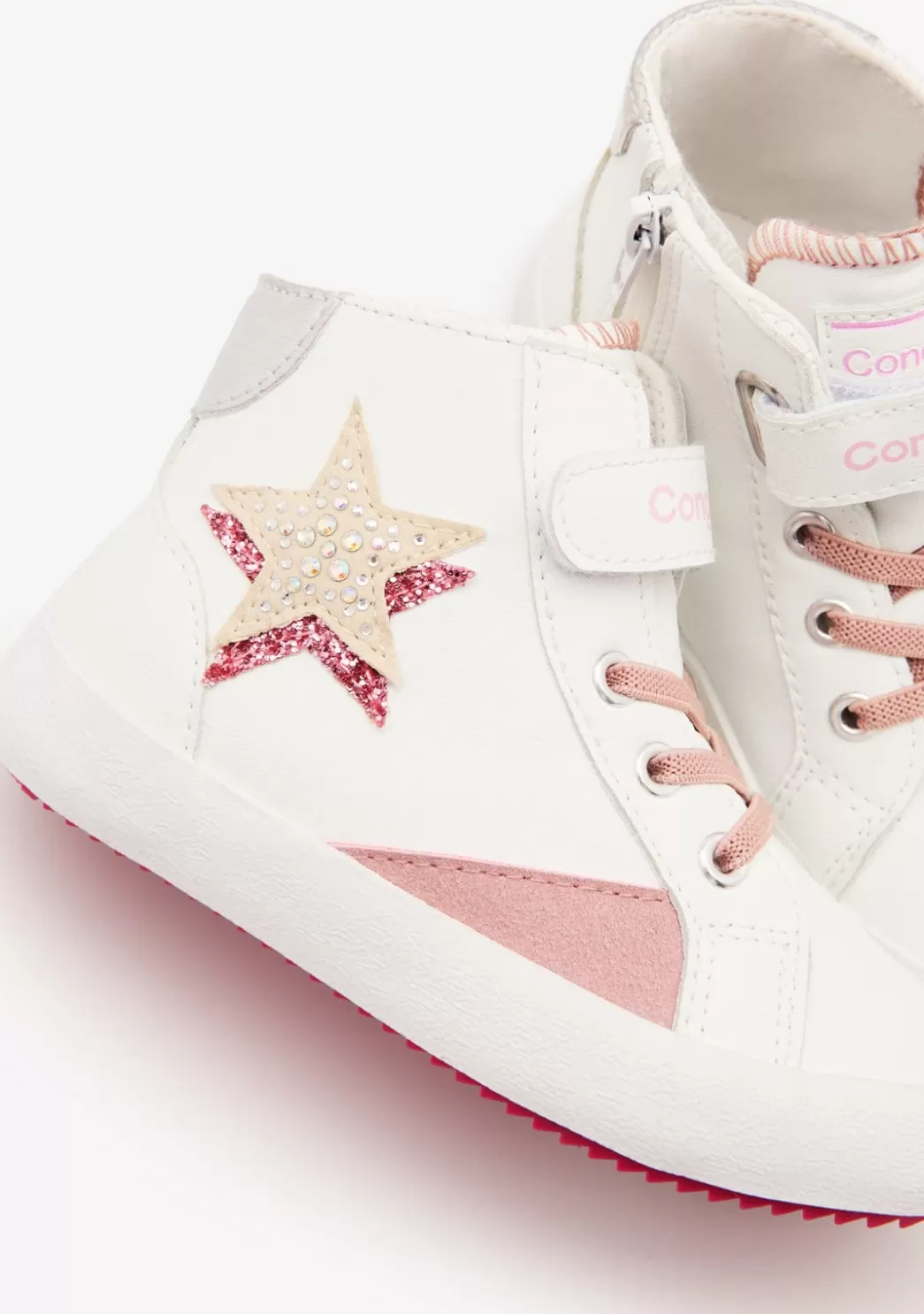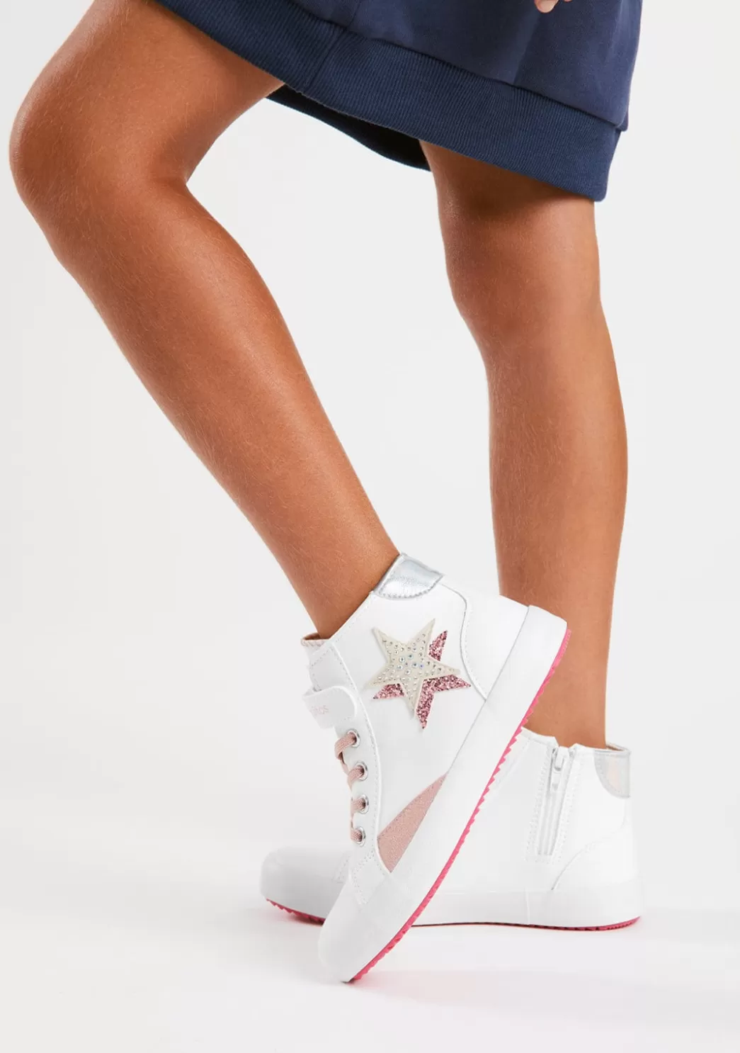 Zapatillas deportivas blancas de caña alta con detalle de estrella en el lateral. Están confeccionadas en ante sintético y cuentan con una plantilla textil.