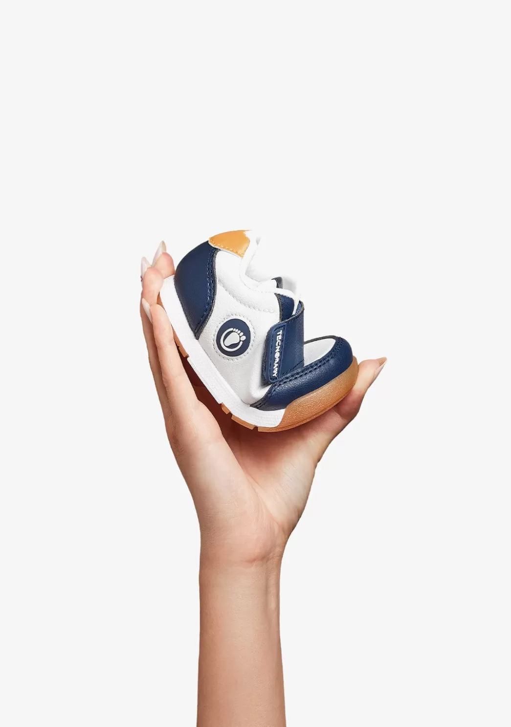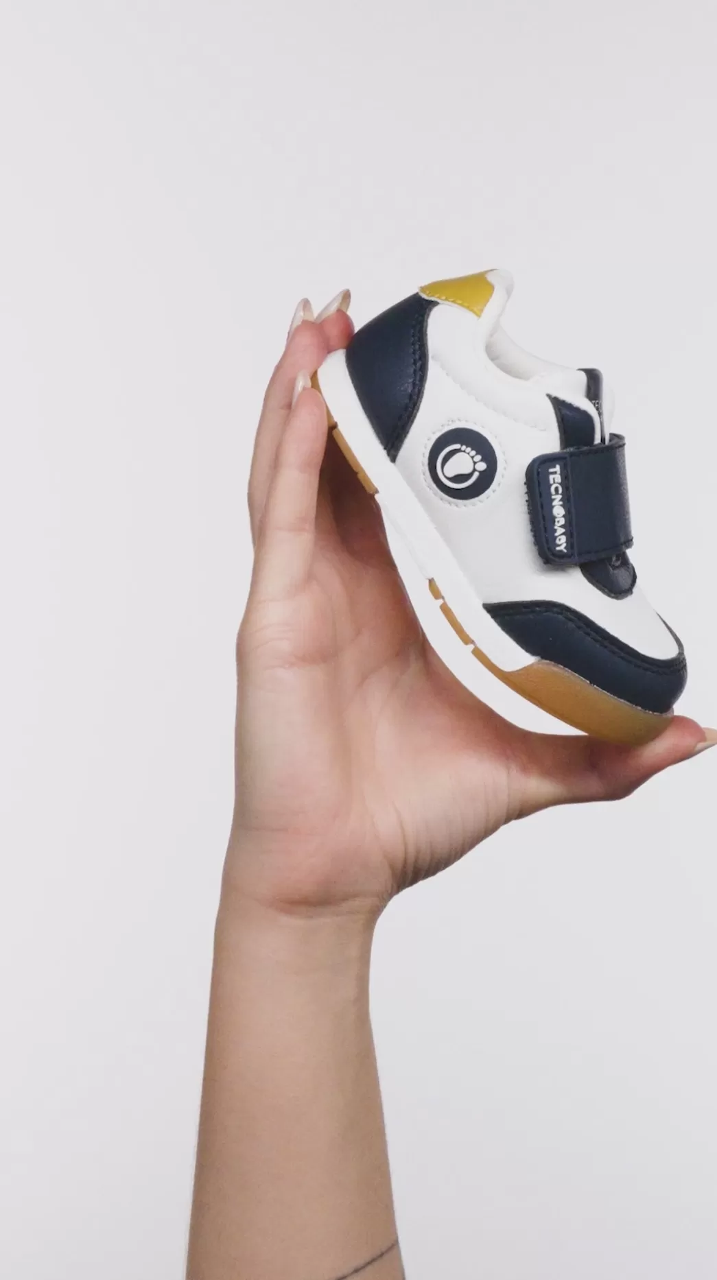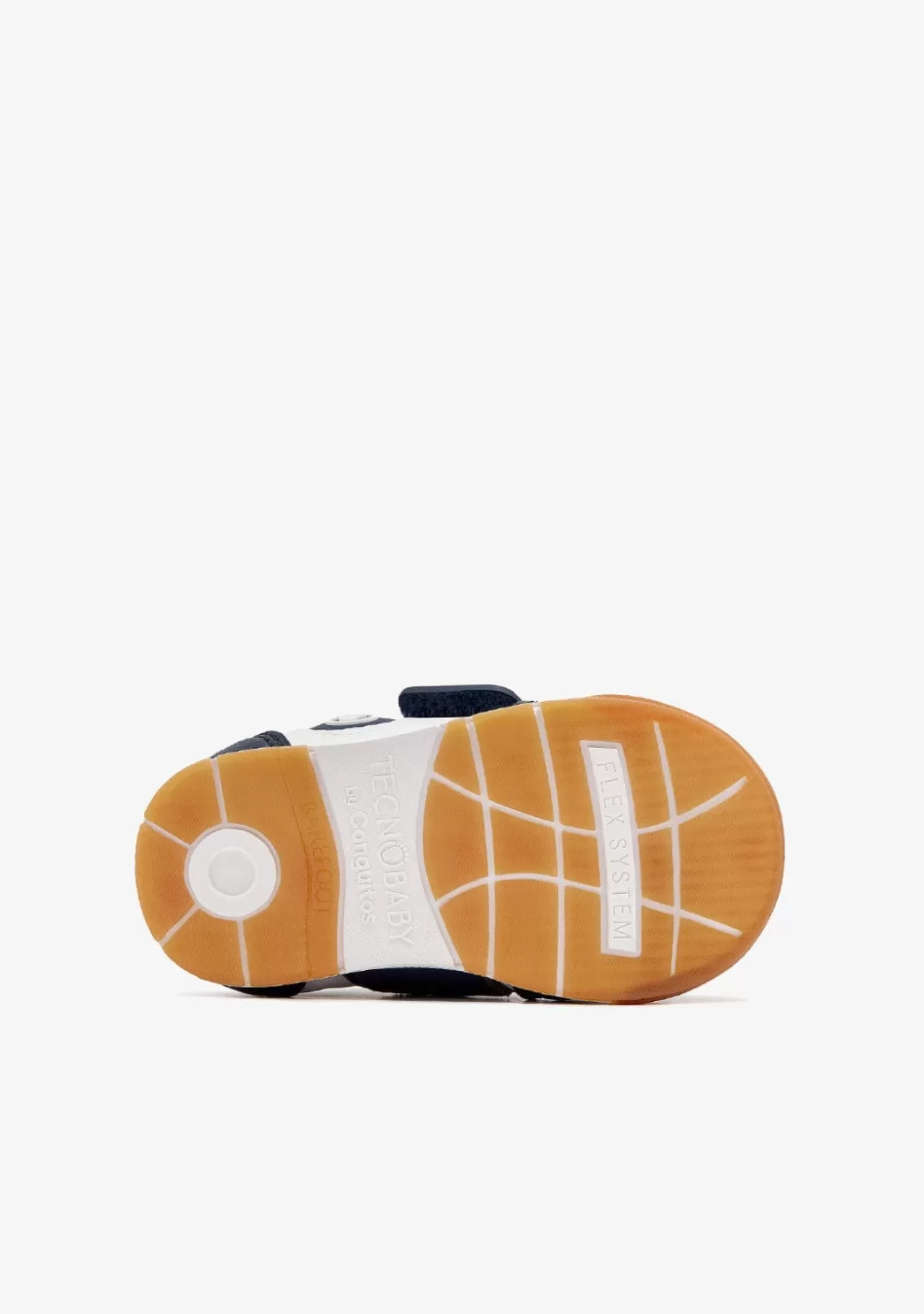 Calzado respetuoso tipo sneaker en marino para sus primeros pasos. Este diseño cumple con todos los requisitos podológicos: es ligero, flexible, con puntera ancha y con una suela zero drop que mantiene la misma altura desde el talón hasta la puntera. Estas características facilitan el andar con libertad, generando así el efecto descalzo o «barefoot».