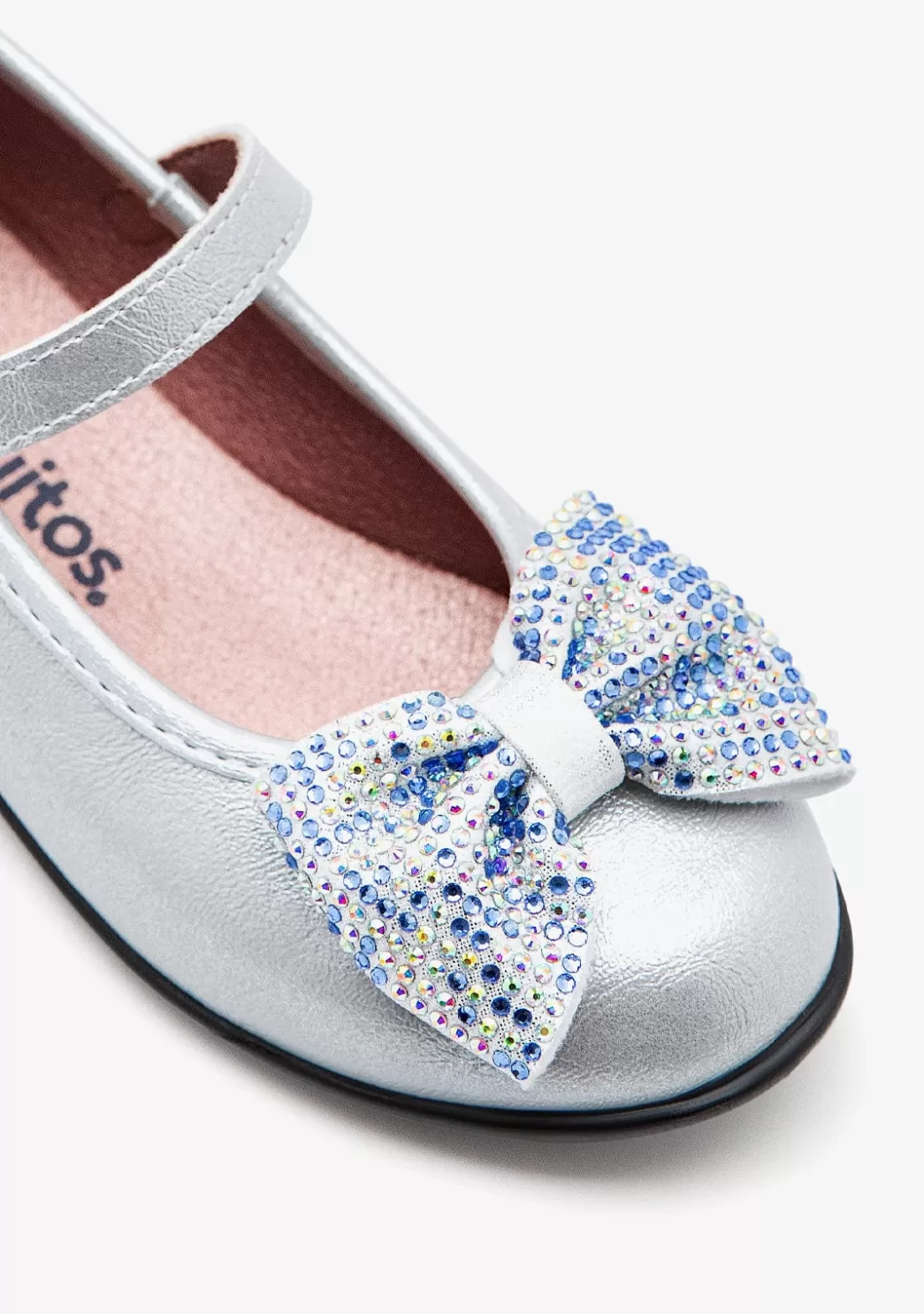 Bailarinas con acabado en color plateado. Un diseño creado para sus días más especiales.