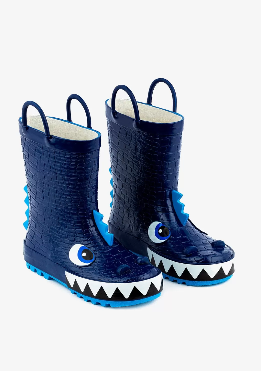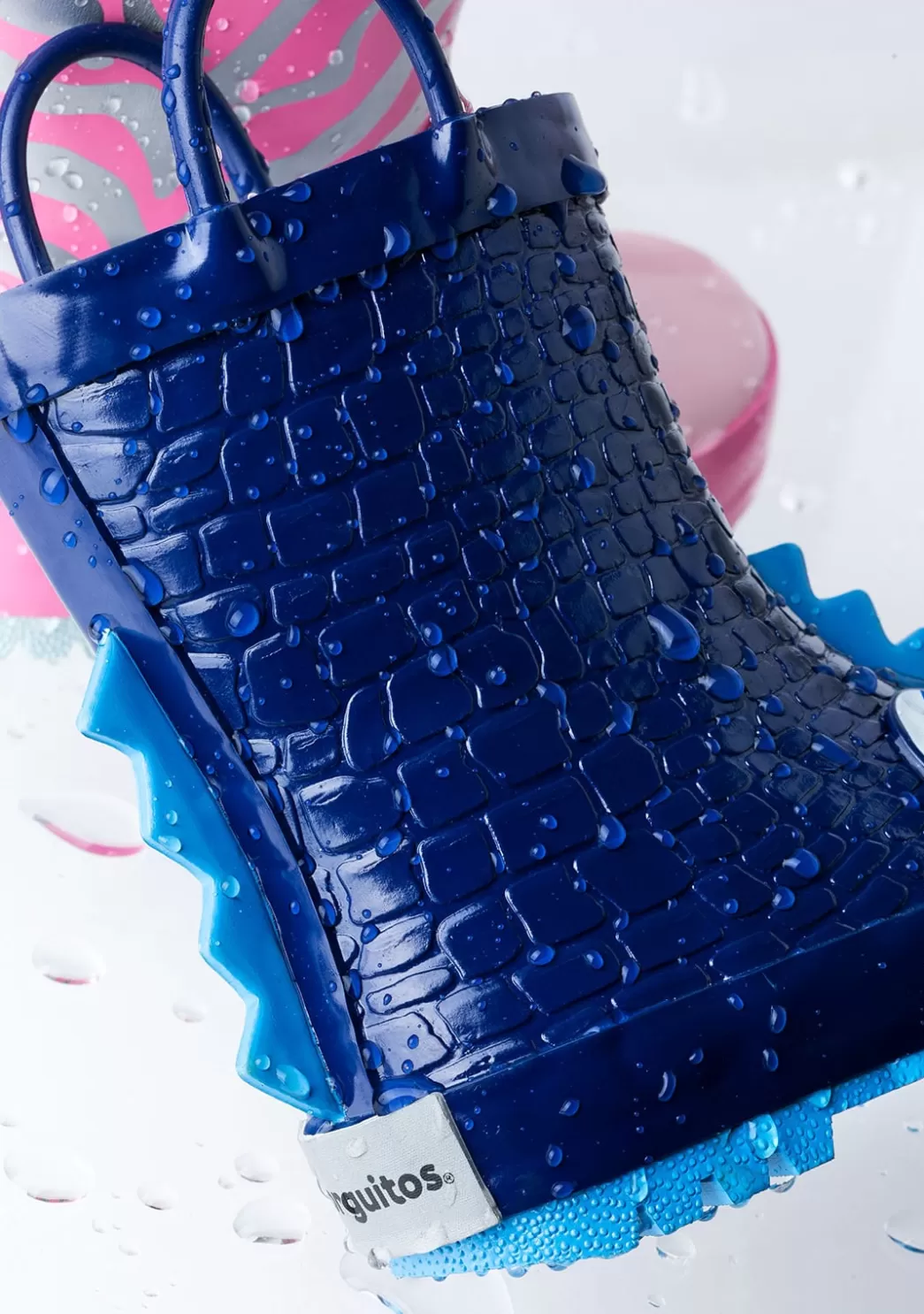 Botas de agua en color azul fabricadas con materiales de goma impermeable con detalles de dinosaurio. ¡Las botas más divertidas para pisar charcos! Tienen una suela dentada antideslizante con asas en la zona superior para facilitar su uso. Con detalles de dinosaurios. Con interior forrado para aislar del frío y mayor confort en la pisada.
