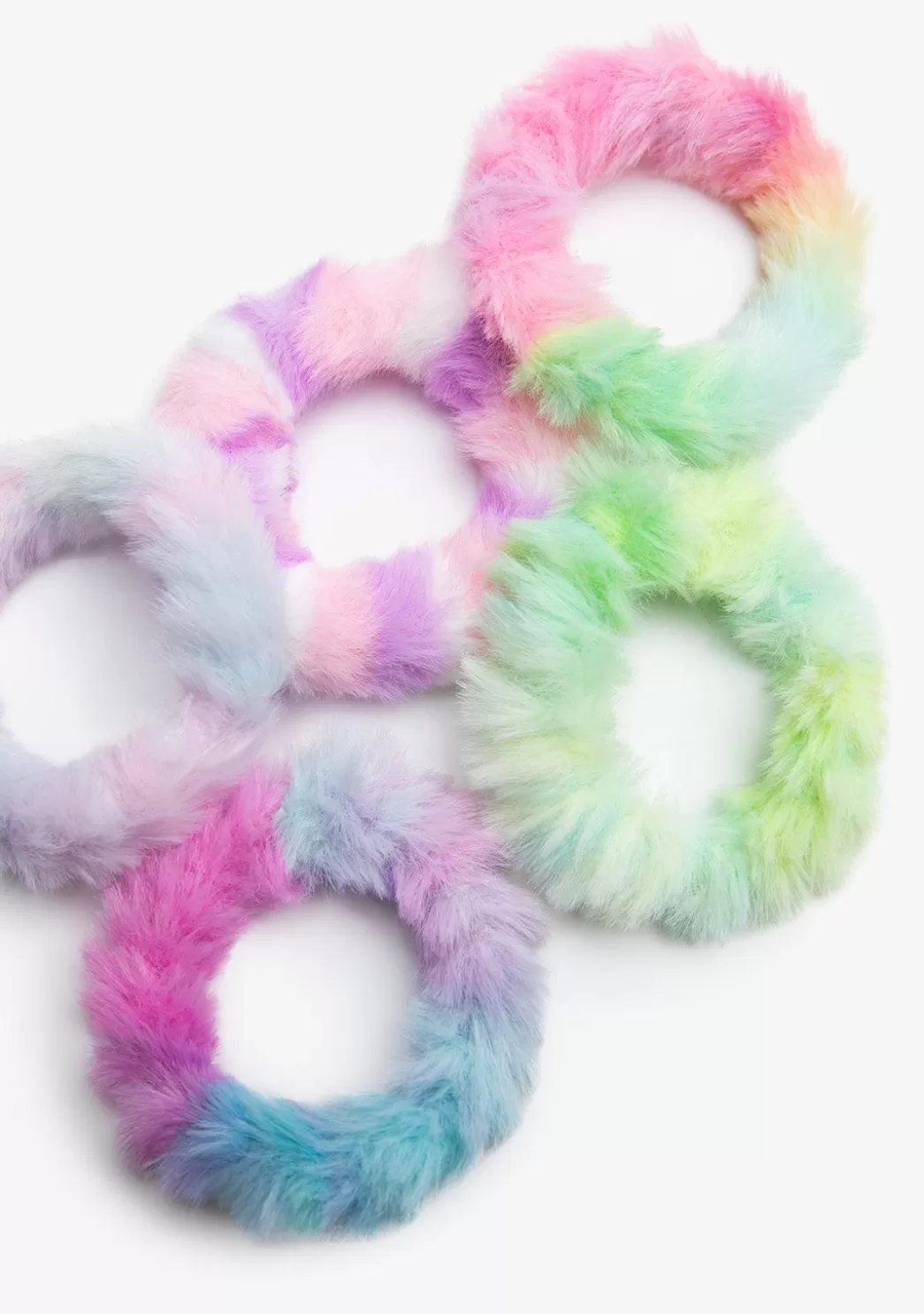 Este set incluye cinco coleteros de pelo en una variedad de tonos azules, verdes, rosas y púrpura. El accesorio ideal para aportar personalidad a sus peinados y sus looks.