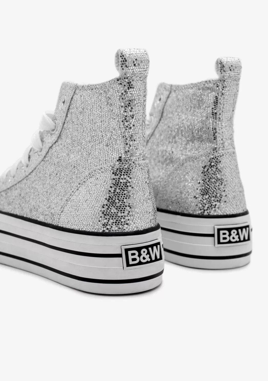 Zapatillas altas en color plateado. Un diseño esencial para cualquier estilismo.