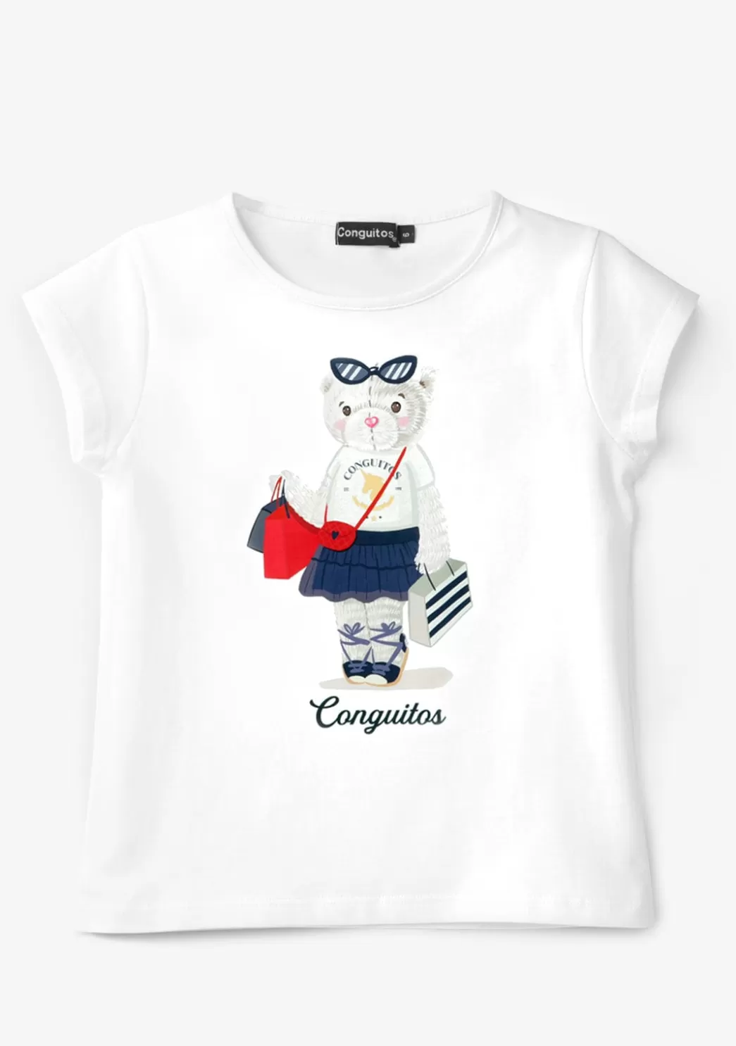 Camiseta blanca de algodón con estampado de oso perfecta para pasar los días más cálidos de la forma más fresca y divertida.