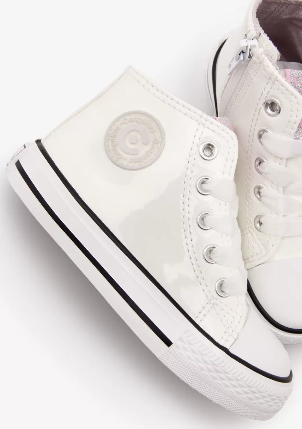 Zapatillas altas de charol en color blanco con detalles Conguitos.