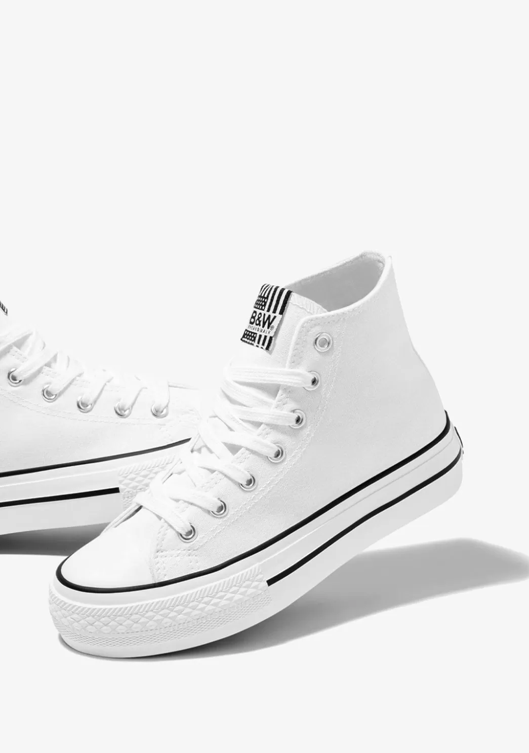 Estas Hi-Top sneakers con plataforma en color blanco se inspiran en las colecciones más casual, combinadas con la personalidad y el estilo más marcado de B&W. Son las sneakers más versátiles. Perfectas para crear miles de looks. ¡Disfruta de la nueva colección primavera-verano!