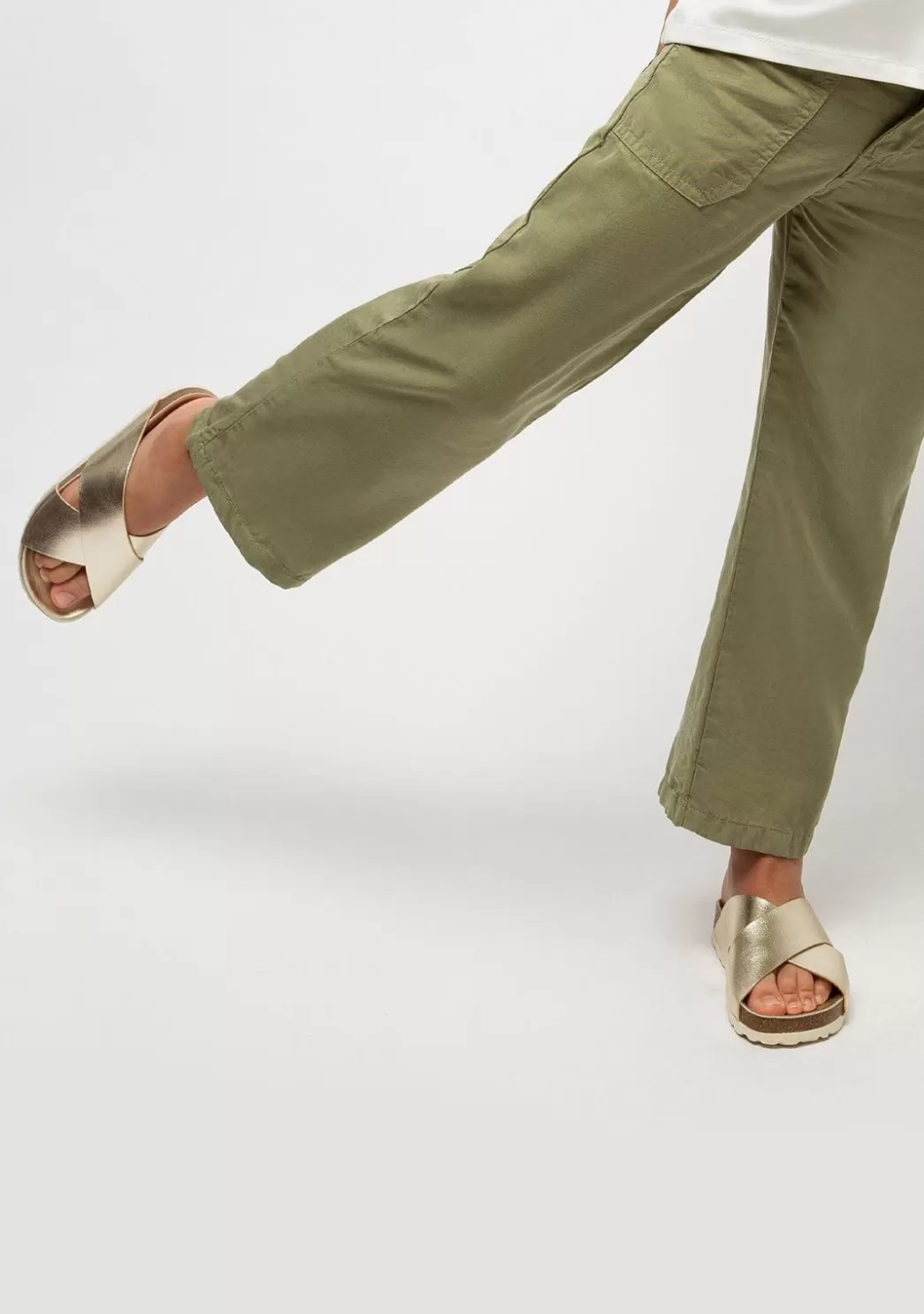 Pantalones de niña de corte culotte con camal recto y ancho, fabricado en tejido tencel y de color verde kaki. Estos pa…