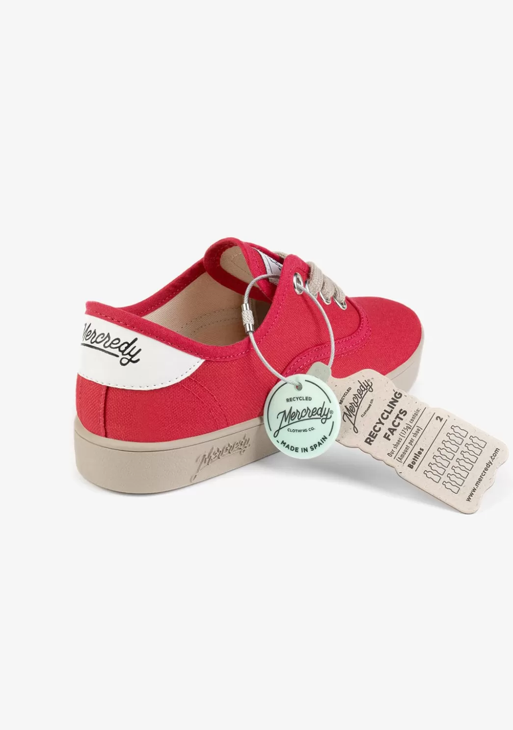Zapatillas deportivas de Conguitos hechas con botellas de plástico recicladas. Estos zapatos fucsias están hechos de plástico reciclado, siendo la mejor opción de zapatos ecológicos actuales para niños y adultos. Son totalmente unisex y están disponibles en varios colores, con forro interior de algodón y suela de goma natural.
