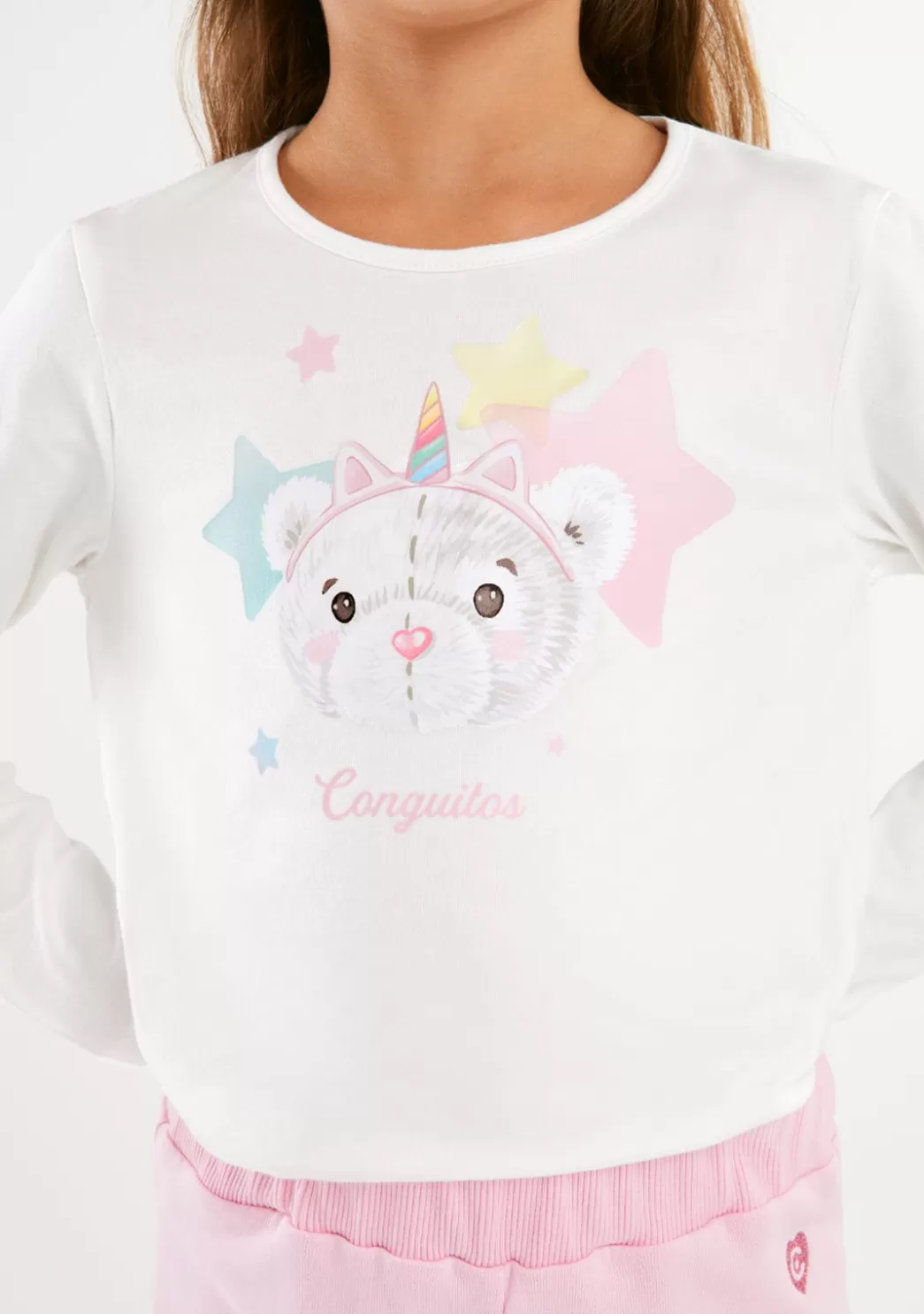 Camiseta con dibujo osita Conguitos. Una pieza en tono blanco diseñada para las aventuras del día a día.